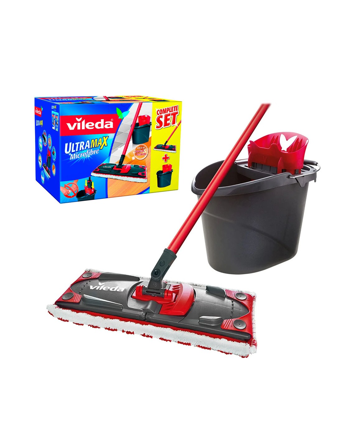Set ultramax mopa microfibras 2 en 1. limpia la suciedad mas dificil manteniendo las manos limpias y secas. el set ultramax viene con un nuevo escurridor que permite realizar un movimiento vertical y asi escurrir mucho mejor la mopa consiguiendo la humedad exacta, deseada y manteniendo las manos secas. ideal para limpiar todo tipo de suelos, especialmente para limpiar el parquet 36 x 13,6 cm