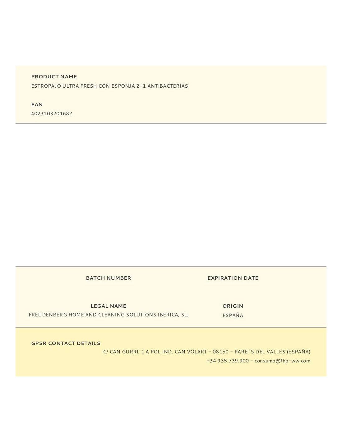 Estropajo ultra fresh con esponja 2+1 antibacterias. es el unico estropajo 100% antibacterias del mercado. elimina eficazmente la suciedad de todo tipo de superficies y tiene una gran capacidad de absorcion. tratamiento antibacterias tanto en la fibra como en la esponja. previene el desarrollo de bacterias en un 99,9% mas higienico y duradero. la fibra multiusos elimina la suciedad dificil sin rayar. esponja con tratamiento hidrofilo que absorbe eficazmente liquidos