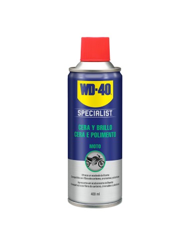 Cera y brillo 400ml wd40. este producto se ha diseñado para aportar un encerado brillante a la moto. la fórmula contiene cera de carnauba, una de las ceras naturales más resistentes, que proporciona un acabado brillante y duradero. es excelente para repeler el agua, manteniendo un fantástico acabado durante más tiempo. es fácil de aplicar y no deja marcas.