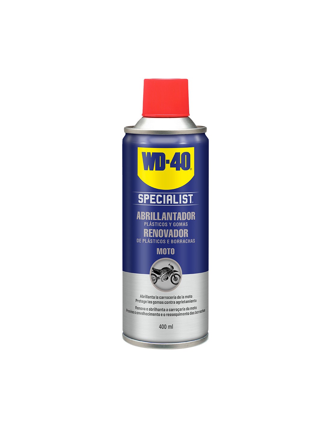 Abrillantador de silicona 400ml wd40. este producto se ha diseñado para conseguir un acabado brillante en la moto. su fórmula de rápida evaporación actúa rápidamente y de manera sencilla sin necesidad de pulir.fantástico acabado brillante. fácil de usar. ayuda a prevenir el agrietamiento y envejecimiento de las gomas. wd40