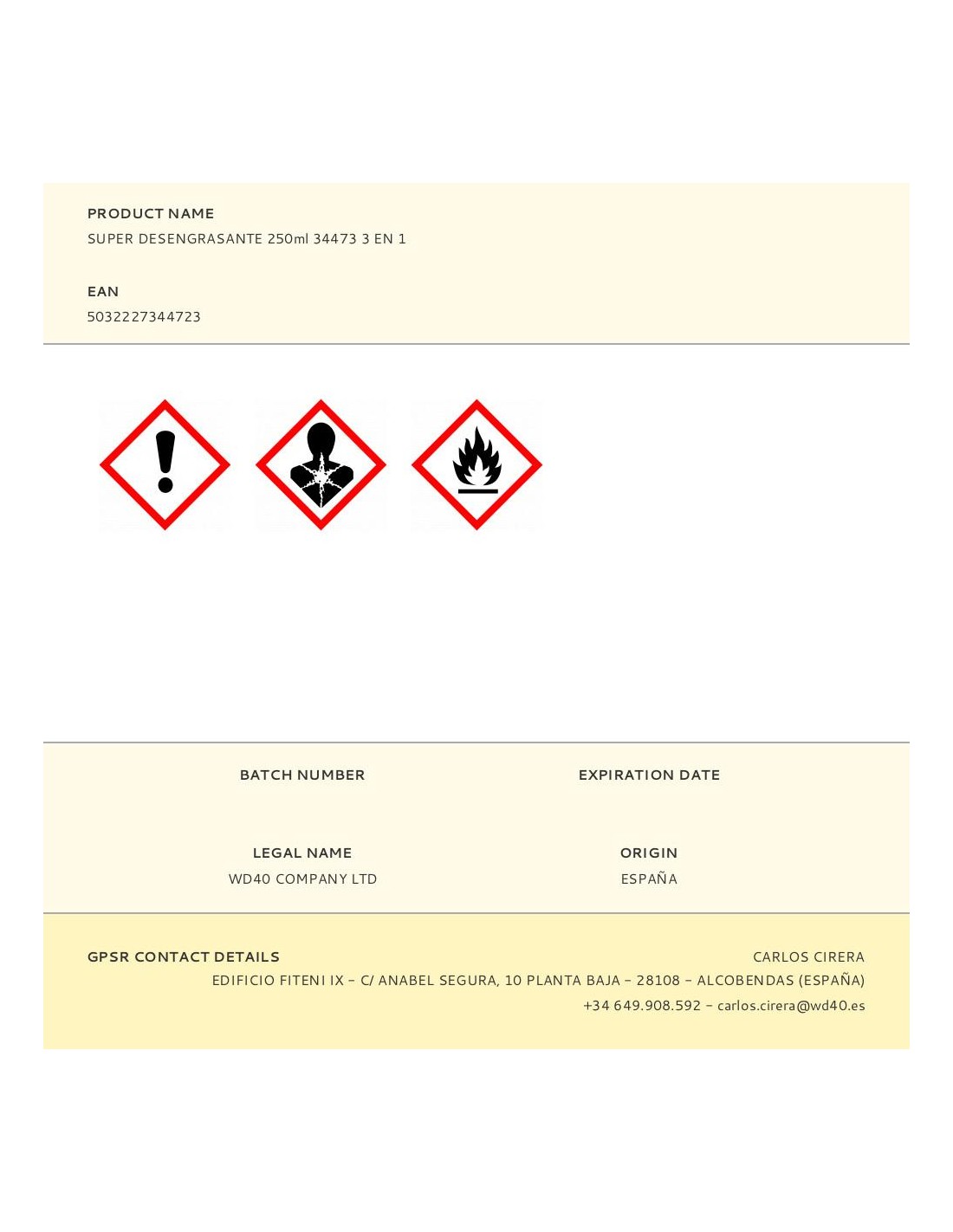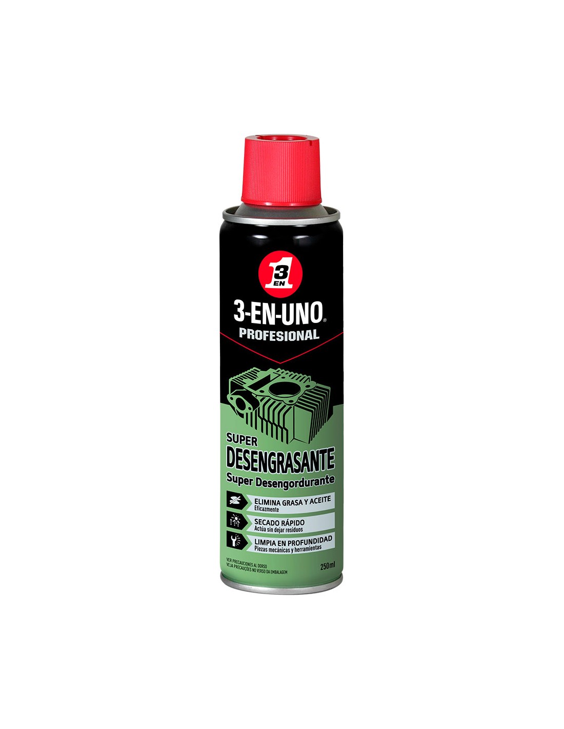 Super desengrasante 250ml 3 en 1. necesidad de un producto que limpie de forma rápida y eficaz grasas, alquitrán y todo tipo de suciedad de motores, herramientas, partes del coche, etc.es compatible con todos los metales, plásticos, gomas y pinturas de superficie.elimina rápidamente aceites, grasas, alquitranes y todo tipo de suciedad.actúa y evapora rápidamente sin dejar residuo.