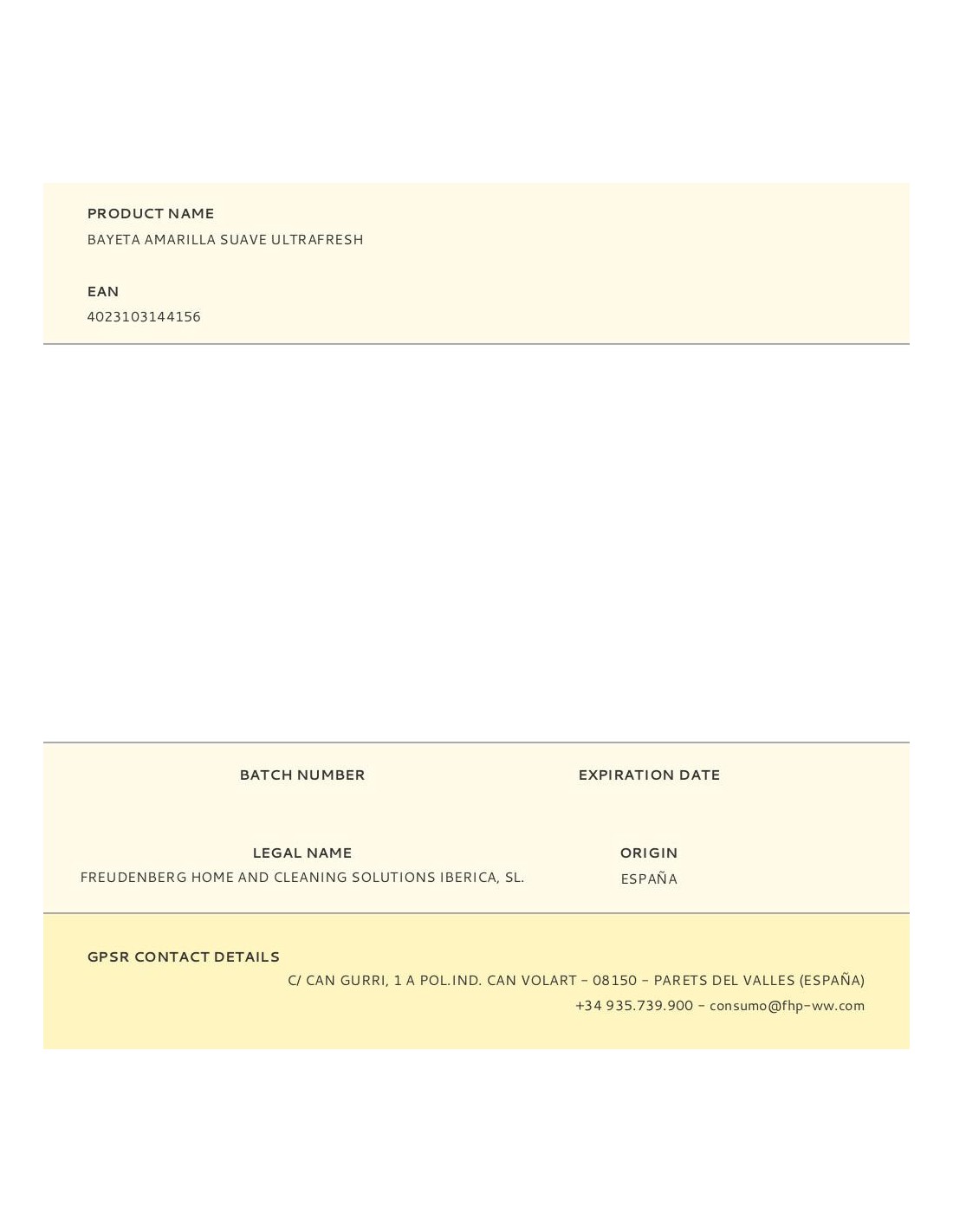 Bayeta amarilla suave ultrafresh. posee un tratamiendo de cloruro de plata que retrasa la aparicion de bacterias y malos olores en la bayeta. su estructura 3d recoge hasta un 40% mas de particulas e incorpora un 30% de microfibras para una mayor absorcion y poder de limpieza. medida: 34 x 34 cm