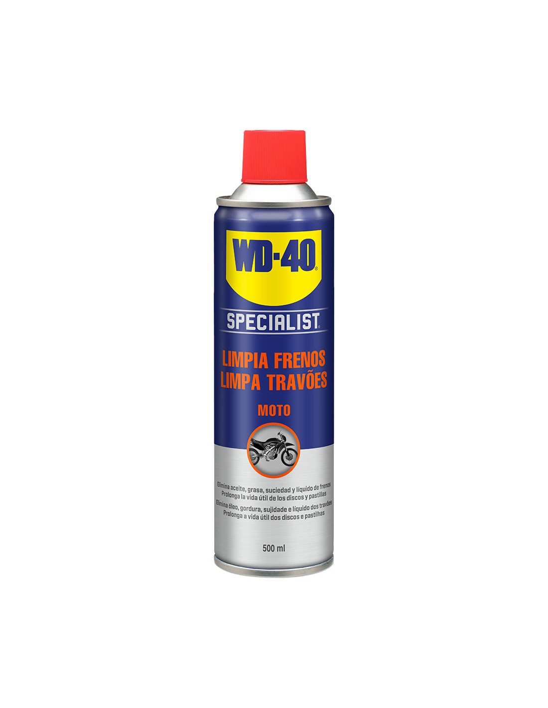 Limpia frenos 500ml wd40. fórmulas desarrolladas en colaboración con la universidad de sheffield, incluida la creación de una prueba anti-goteo.ensayo con el team wd-40 del campeonato británico de superbikes para asegurar que los productos satisfagan las grandes exigencias de la competición. mejoran el rendimiento y ayudan a prolongar la vida de la moto. wd40