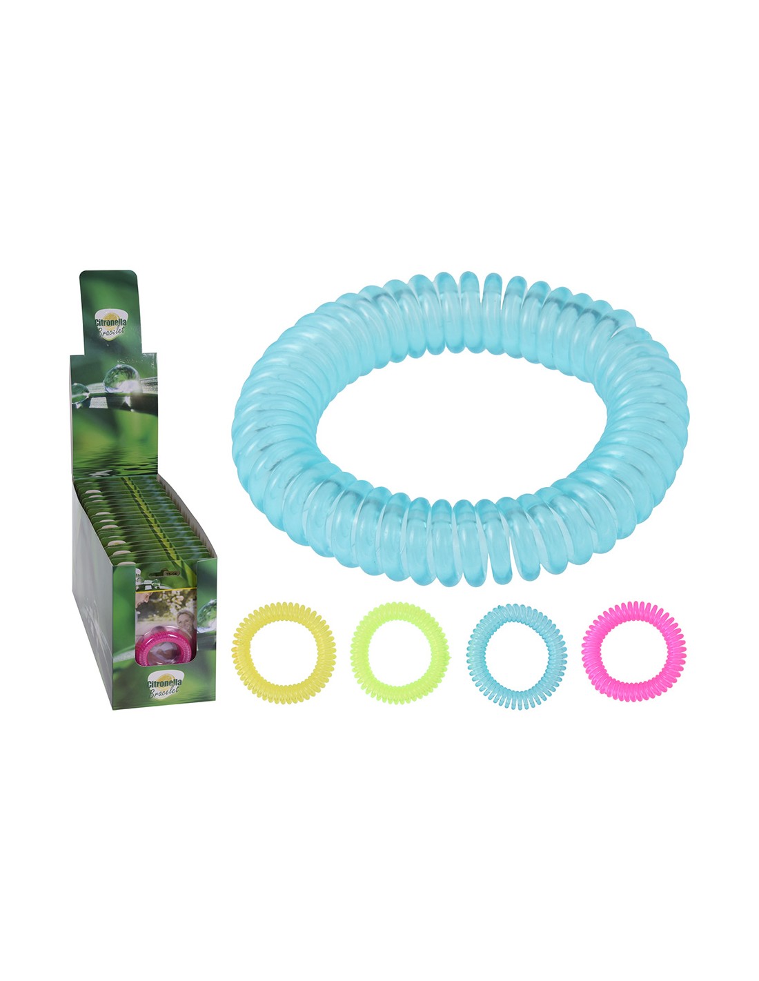 Pulsera espiral antimosquitos con citronela. duración: 200h. medidas: ø6cm (diámetro) material: polipropileno. colores surtidos