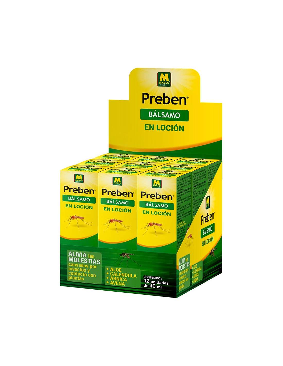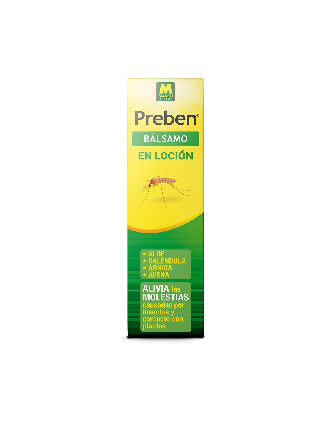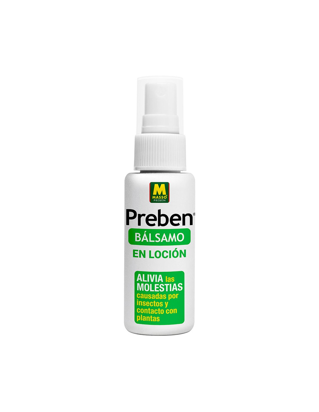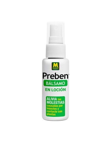 Balsamo en locion para las picaduras. 40ml alivia las molestias de las picaduras de insectos y por contacto con plantas. con aloe y calendula. se recomienda aplicar a unos 5-10cm de la piel. sin amoniaco. no engrasa la piel ni mancha la ropa preben 231410 masso