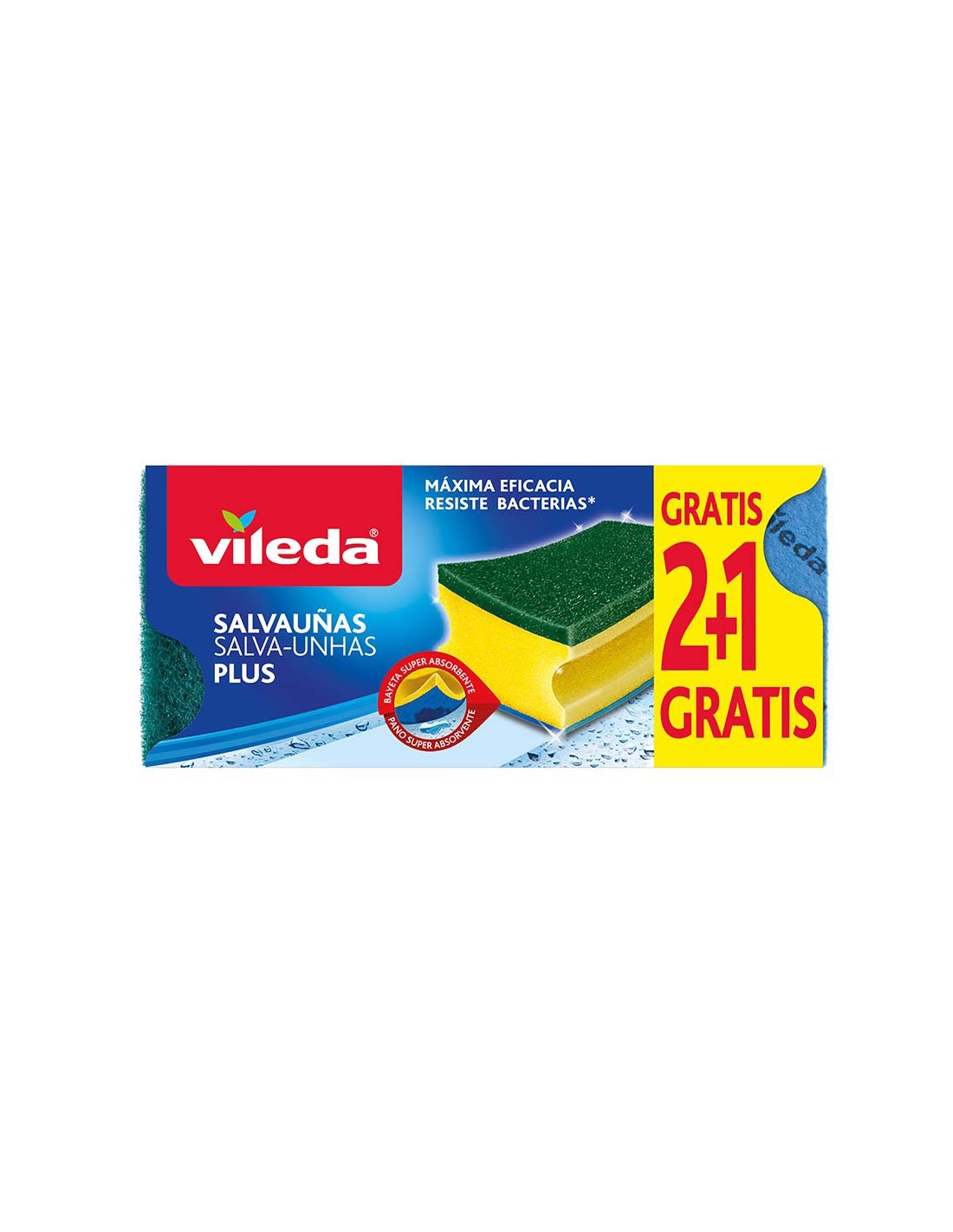 Salvauñas antibacterias 2+1 estropajo con bayeta. con doble cara, la fibra verde permite una gran capacidad de limpieza sin rayar. la bayeta aporta una gran absorcion y secado. con tratamiento antibacterias previene el desarrollo de bacterias un 99,9%. formato salvauñas para proteger eficazmente las manos y uñas