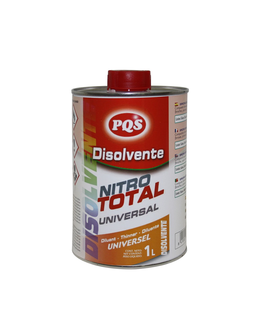 Disolvente nitro total lata 1l pqs compuesto formulado para la dilucion de pinturas y la limpieza de utensilios como brochas, pinceles, pistolas aerograficas. disolvente tipo sintético
