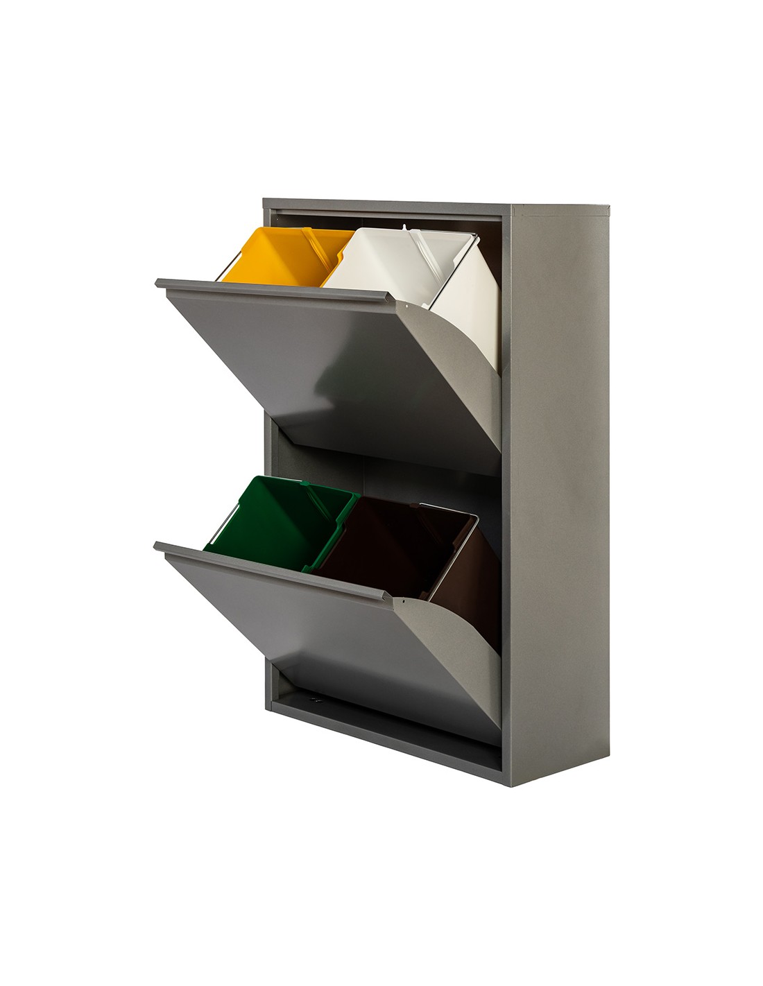 Armario metalico reciclaje 4 cajones gris 92 x 60 x 25 cm, 15 litros por cubo