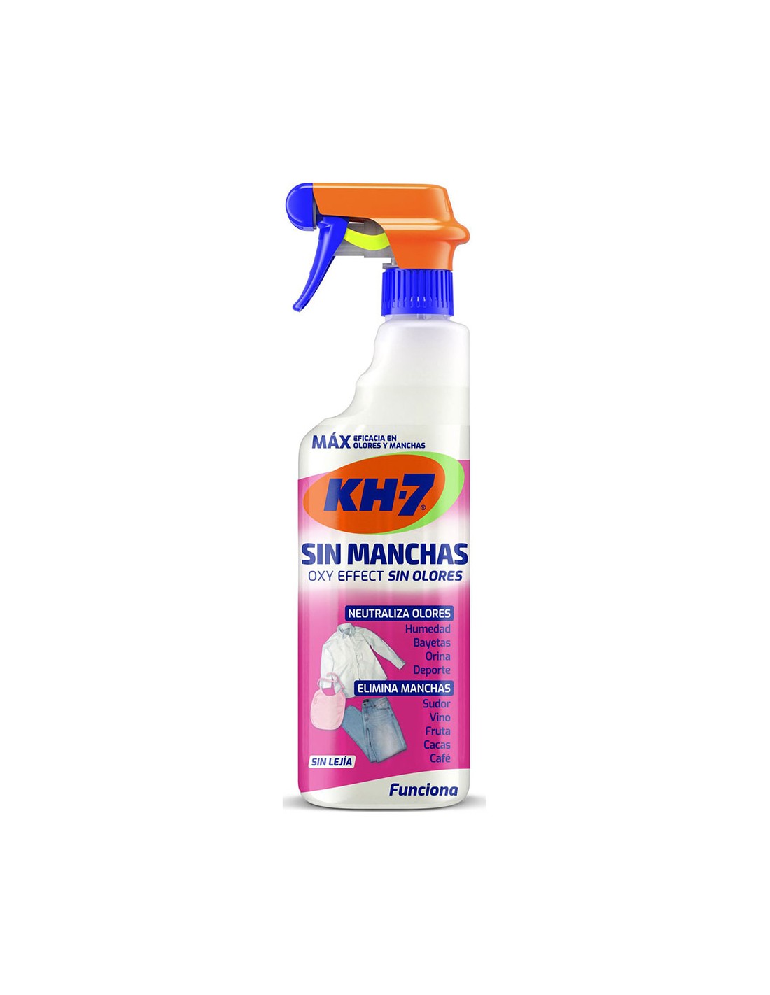Kh-7 sin manchas oxy effect 715 ml. quitamanchas de prelavado especialmente formulado para acabar sin esfuerzo con las manchas blanqueables. eficacia y cuidado para ropa blanca y de color. uso: pulverizar directamente sobre la mancha, y dejar actuar durante al menos 5 minutos (pero sin dejar que se seque). proceder al lavado de la prenda a mano o a máquina. lavado: para potenciar la acción del detergente, añadir un chorro de kh-7 sinmanchas oxy effect en la cubeta de la lavadora junto al detergente habitual.