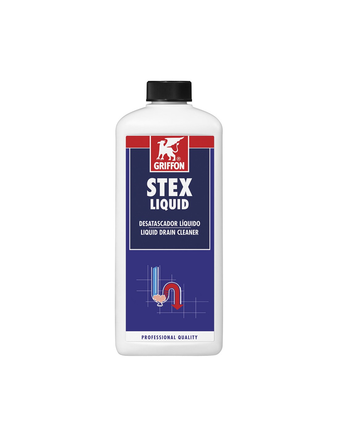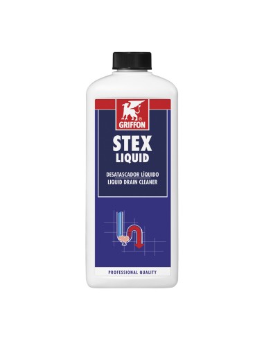 Desatascador stex líquido 1l. limpiador de drenaje líquido profesional adecuado para eliminar obstrucciones y olores desagradables causados, por ejemplo, por cabello, jabón, aceite, grasa y residuos de alimentos en desagües de fregaderos de cocina, lavabos, duchas y bañeras en baños, cocina e inodoro. adecuado para materiales que incluyen sintéticos (pvc, pvcc, abs, acrílico), esmalte, porcelana y metales (cobre, acero inoxidable, cromo, hierro) con la excepción del aluminio. también apto para uso preventivo