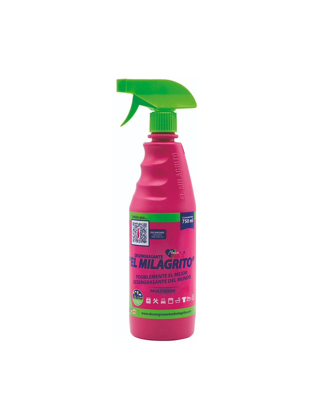 Quitagrasas el milagrito 750ml pistola. disuelve la grasa más difícil sobre la gran mayoría de superficies. además, es un quitamanchas eficaz, que sobre los tejidos de colores sólidos no hay mancha que se le resista. sirve para limpiar cocinas (vitrocerámicas, hornos, fogones, microondas, encimeras...), baños (azulejos, suelos, bañeras...), talleres e industria (herramientas, suelos, motores...), tejidos y calzado (ropa, alfombras, zapatillas...), embarcaciones (barcos, lanchas, veleros, canoas...). uso cómodo gracias a su tapón push pull.