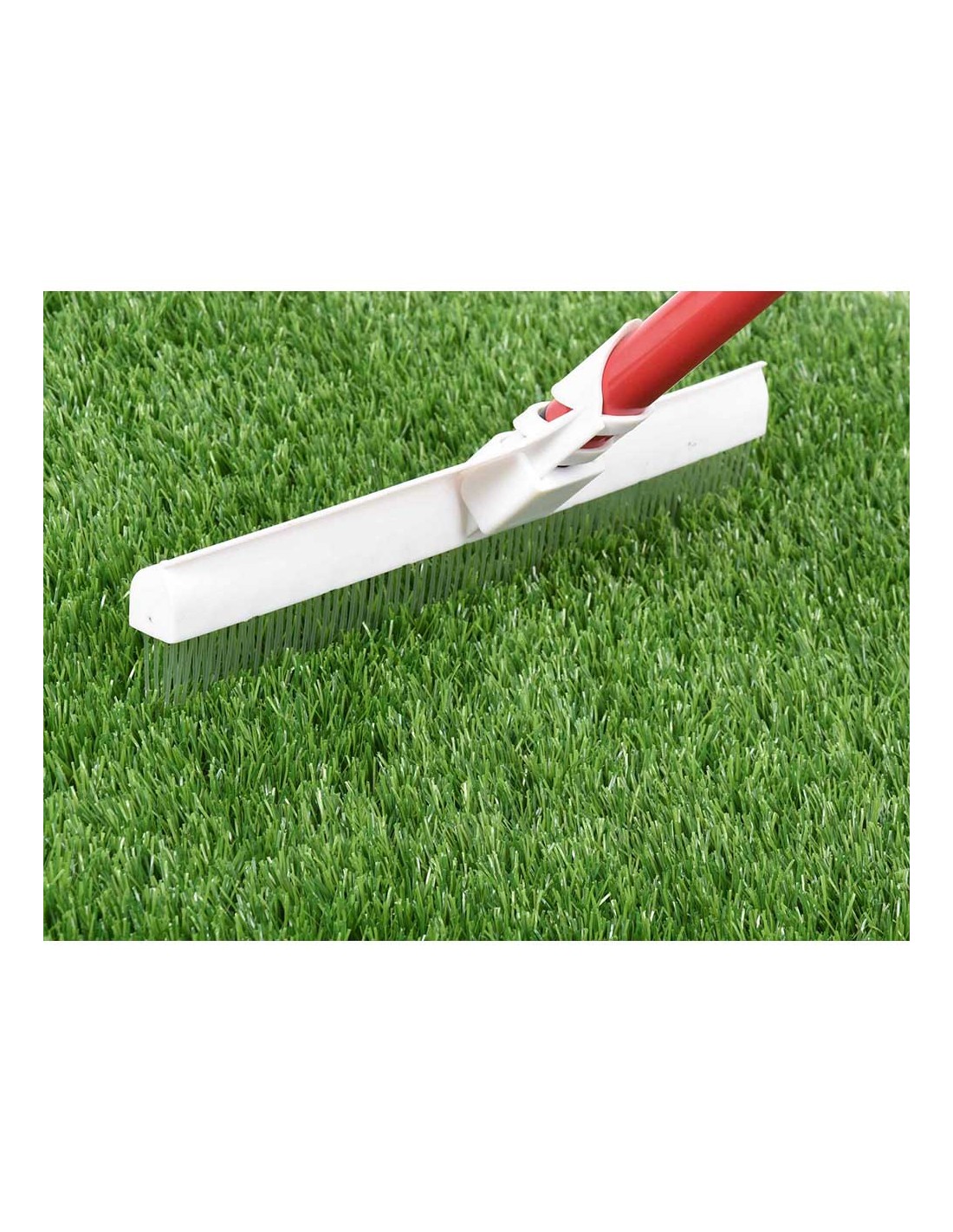 Kit de cepillo para peinar césped 30cm. medida mango: 129,5cm, medida cepillo: 30.5cm. cepillo de fibras de nylon. mango lacado en rojo. mango de metal desmontable. cepillo pvc blanco. medidas mocho: 7x30.5x4cm. mango ø3cm, longitud completa 137cm 28052 faura