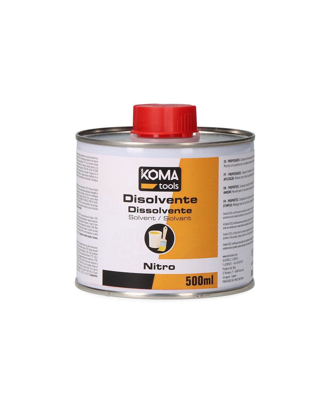 Disolvente 1/2 litro koma tools compuesto formulado para la dilucion de pinturas y la limpieza de utensilios como brochas, pinceles, pistolas aerograficas. disolvente tipo sintético