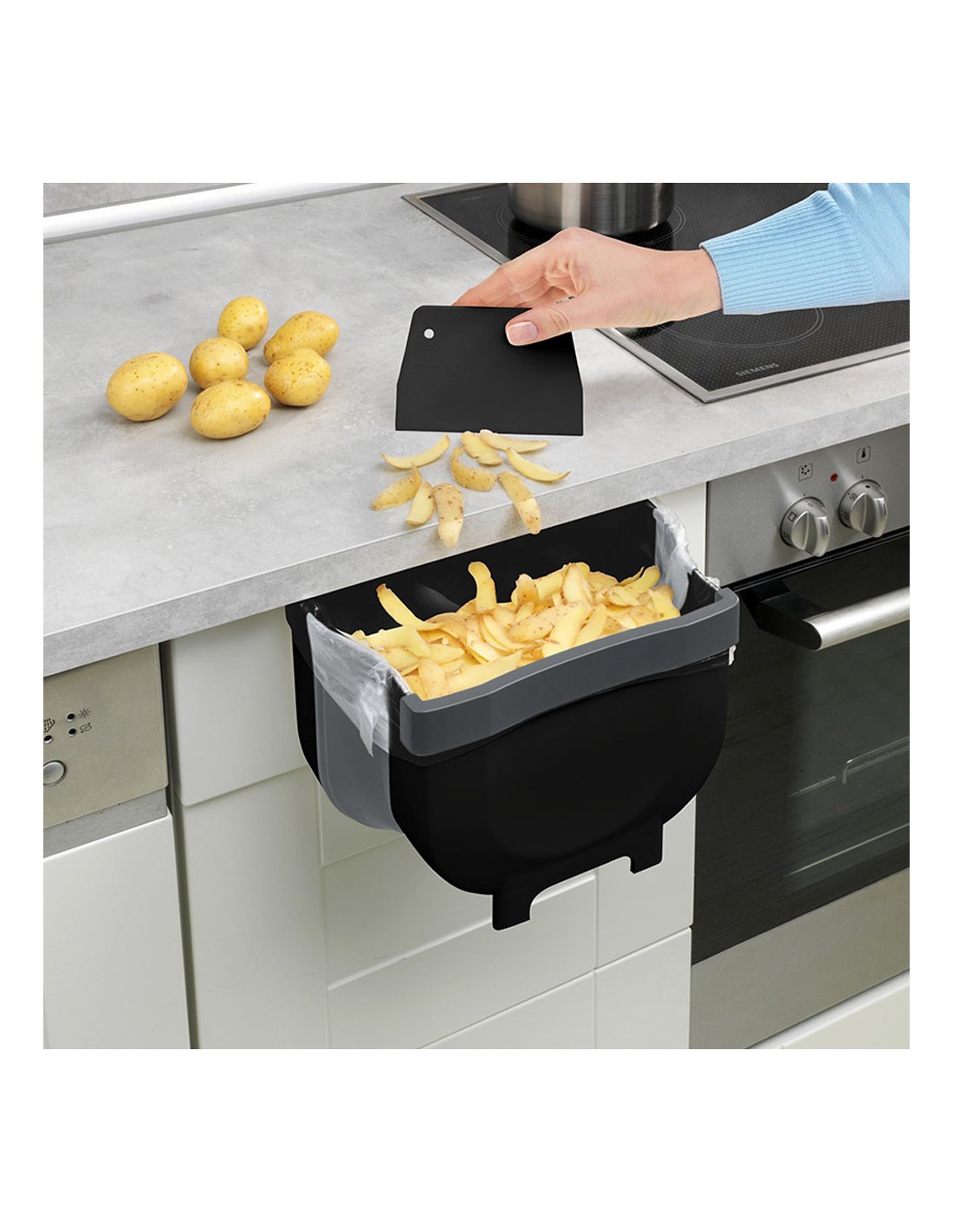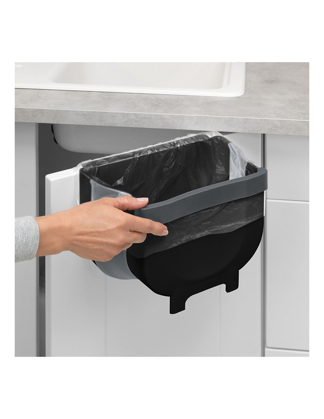Cubo de basura para puerta de armario plegable fago. para el interior y exterior de cajones y puertas de armarios. se ahorra espacio simplemente plegándolo al guardarlo. cubo desplegado: 25,5 x 18 x 18 cm