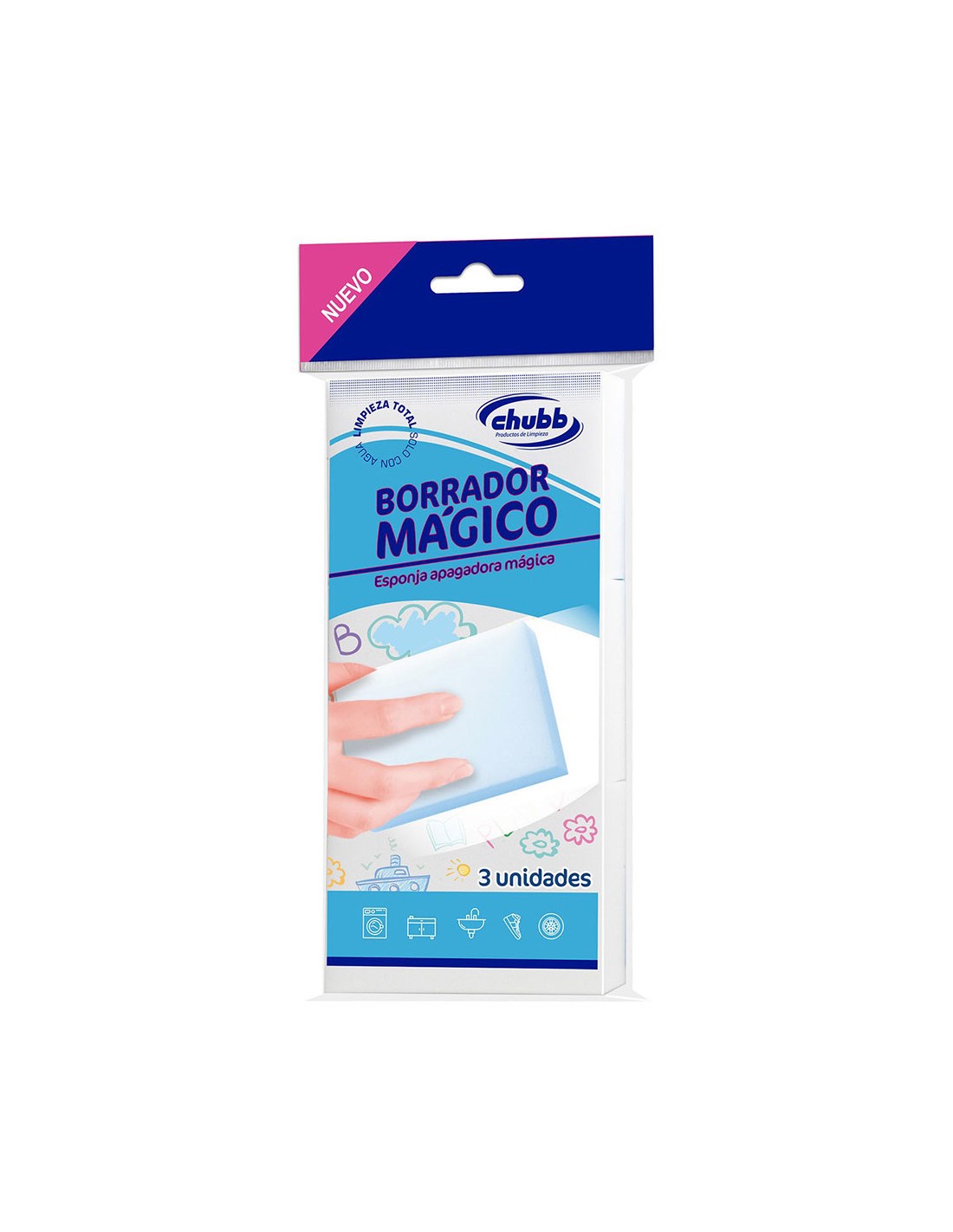 Borrador magico bolsa 3ud 10x7x3cm c01153 esponja de melamina para limpieza. elimina cualquier mancha, suciedad, óxido o grasa en paredes, zapatillas, sartenes, pomos, juntas, etc. útil para múltiples materiales. chubb
