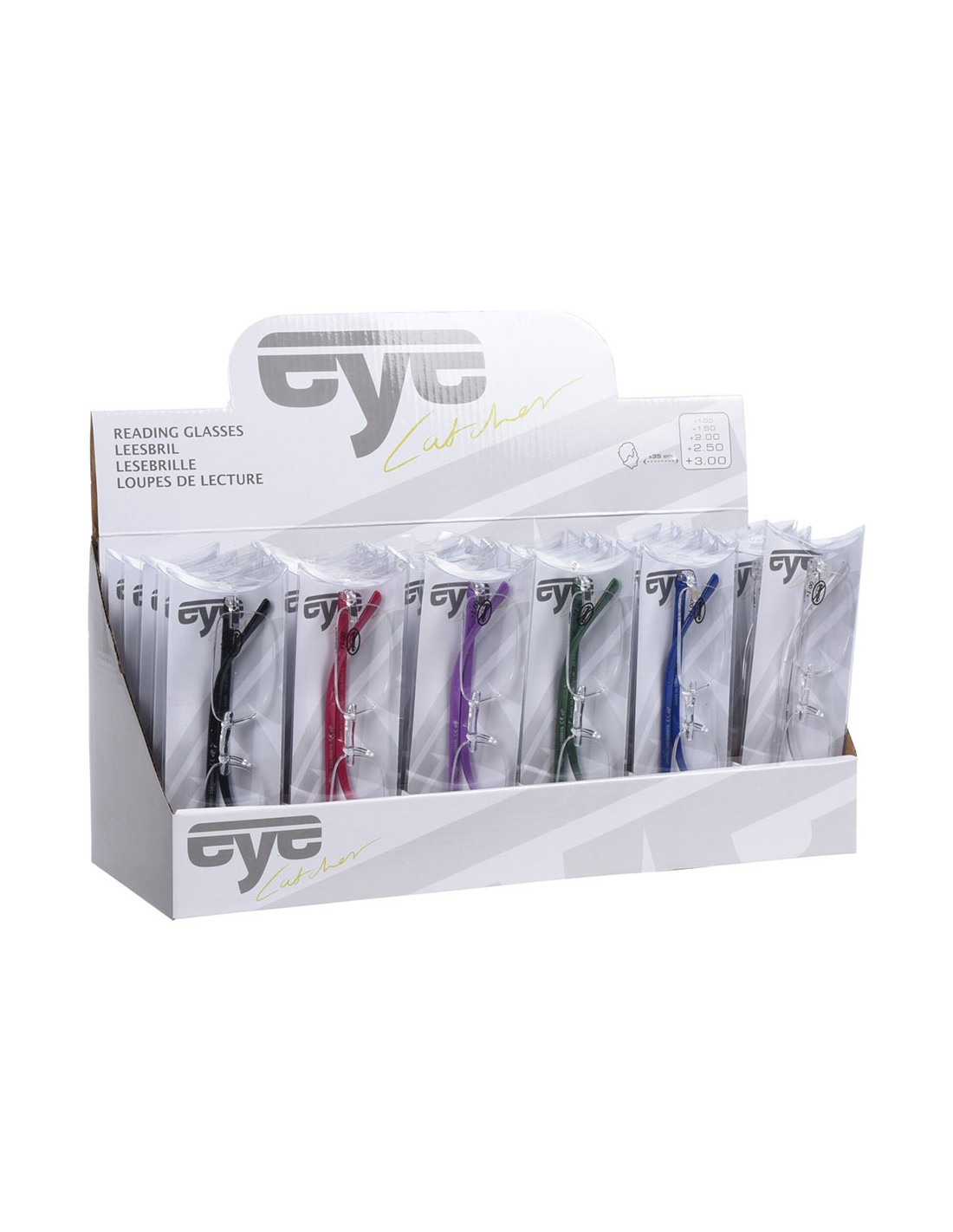 Gafas de lectura, varias graduaciones (6 unidades x. 6 x 1.50, 6 x 2.00, 6 x 2.50, 6 x 3.00) expositor con 30 unidades, colores surtidos