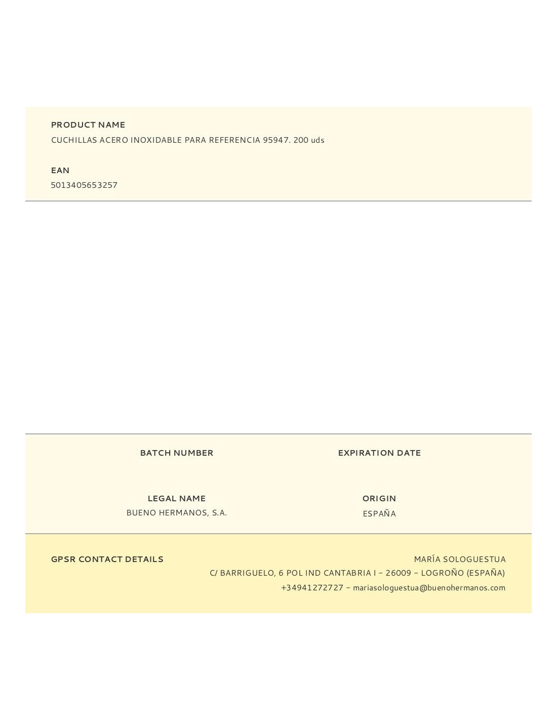 Cuchillas acero inoxidable navaja peluquero 24 cm, para referencia 95947. 200 unidades