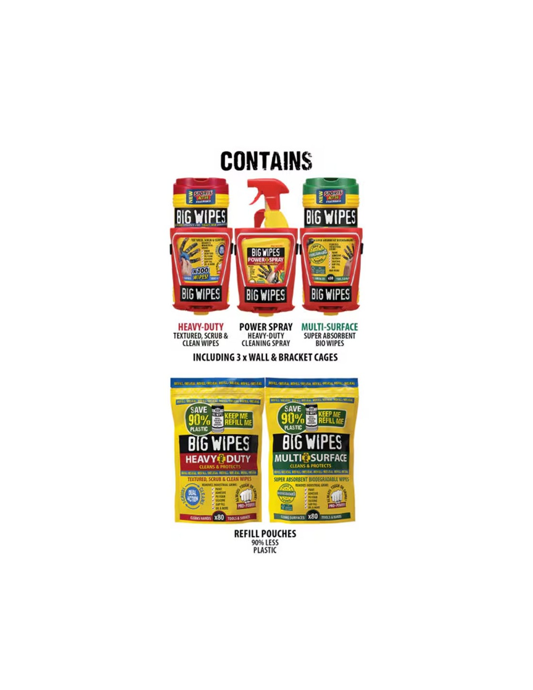 Kit de limpieza que incluye 1x bote toallitas hd100, 1 x bote toallitas ms80, 1 x recambio 100 toallitas hd, 1 x recambio 80 toallitas ms, 1 x pulverizador hd 1l, 3 x portatubos
