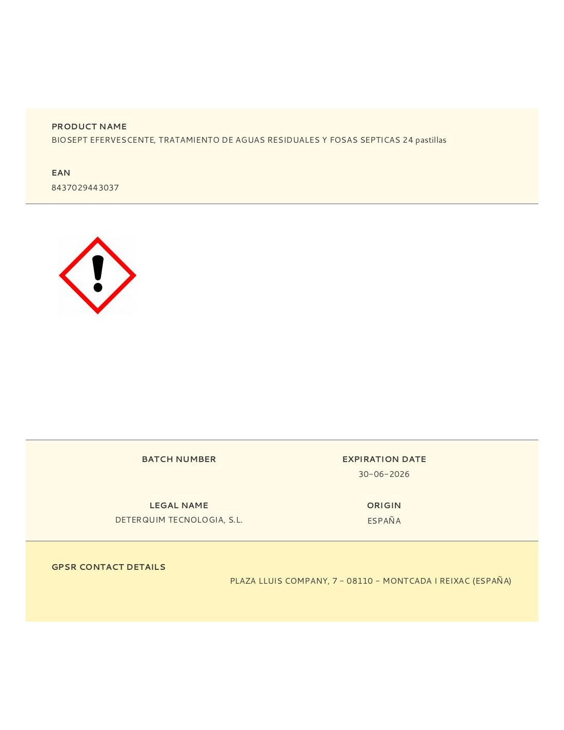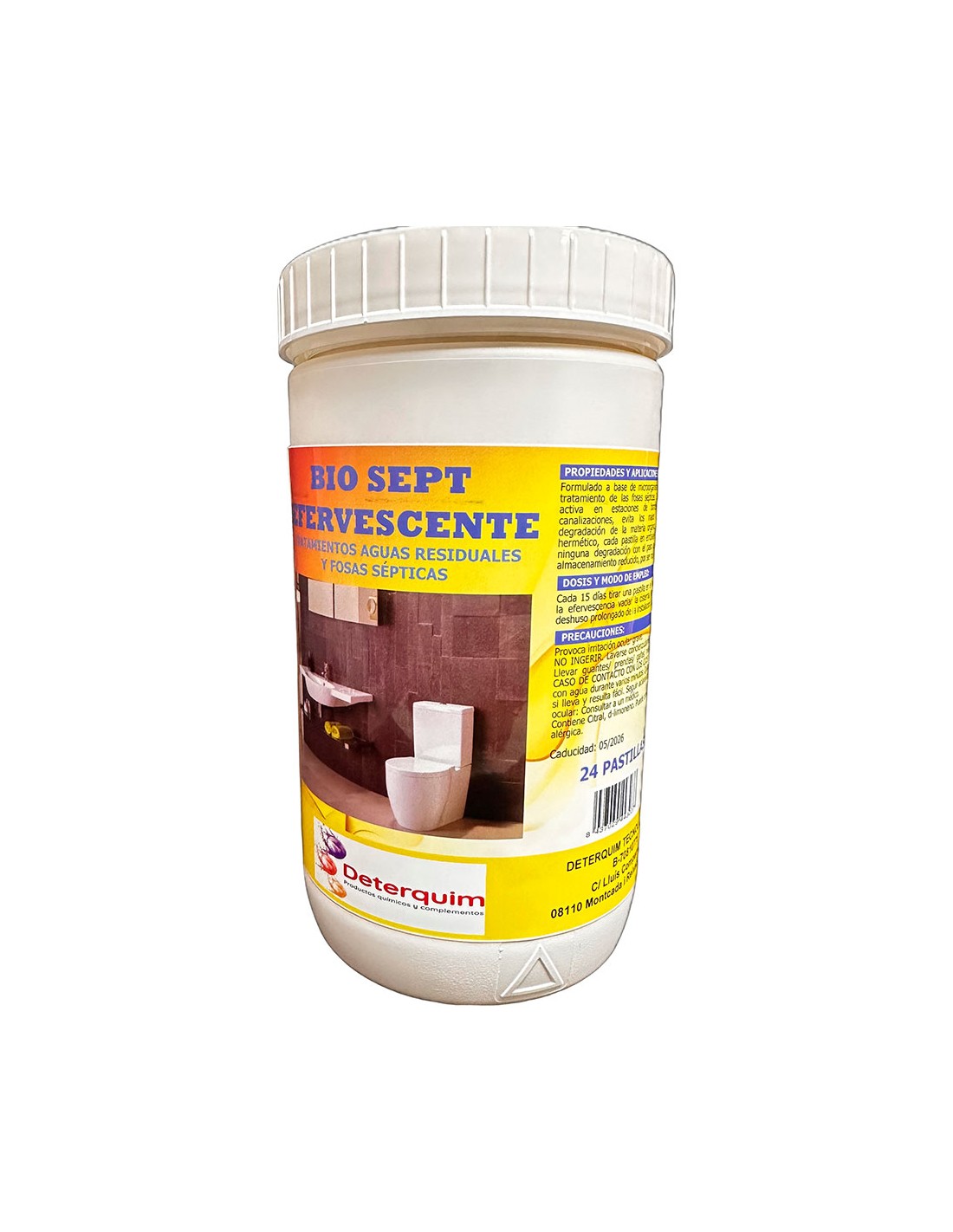 Biosept efervescente, 24 pastillas tratamiento de aguas residuales y fosas septicas, pastillas efervescentes, a base de microorganismos