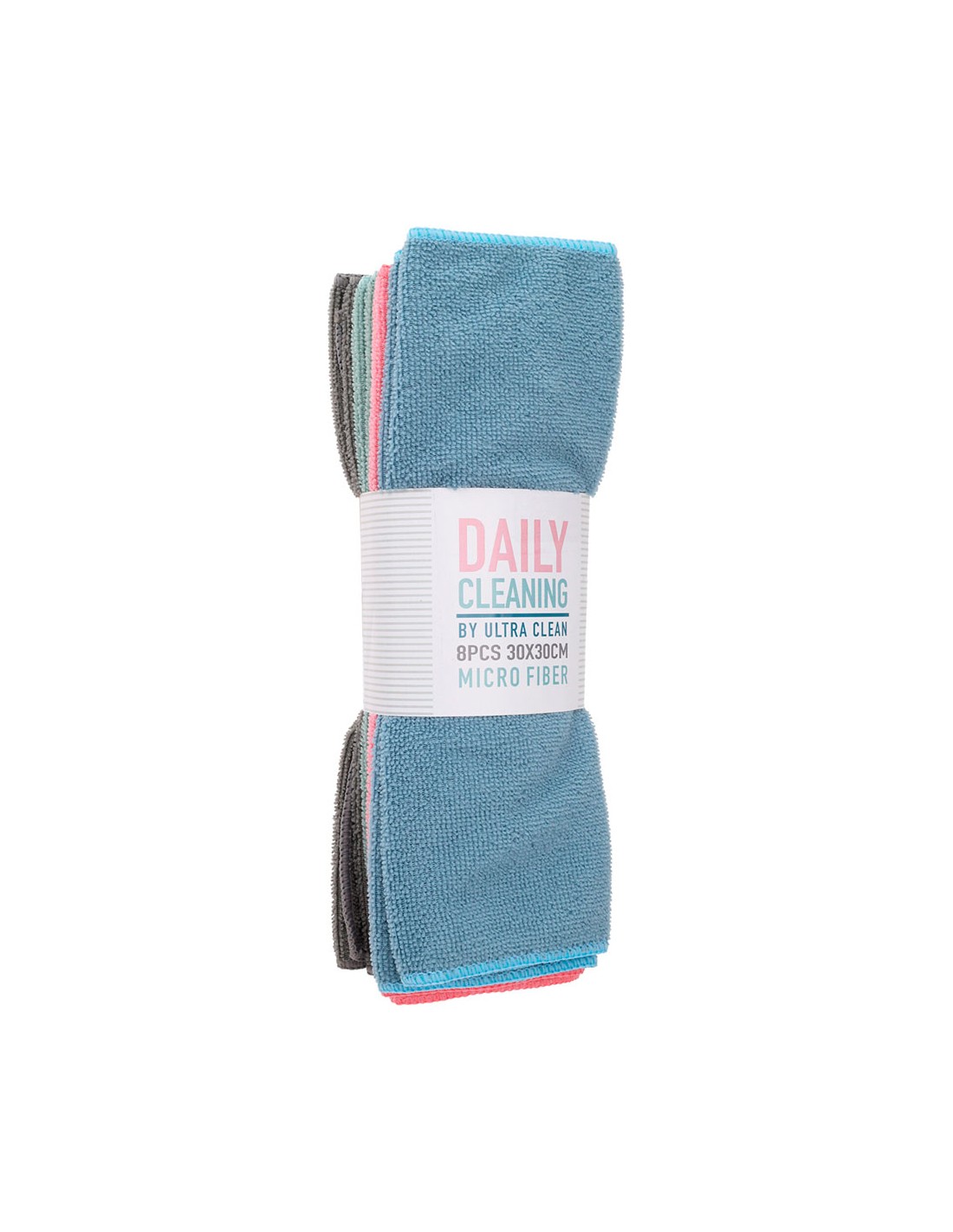 Bayeta microfibra 100% poliéster, 30 x 30 cm, 8 uds, para uso en seco o humedo, lavable a máquina hasta 60°c, lavar sin suavizante o agente blanqueador