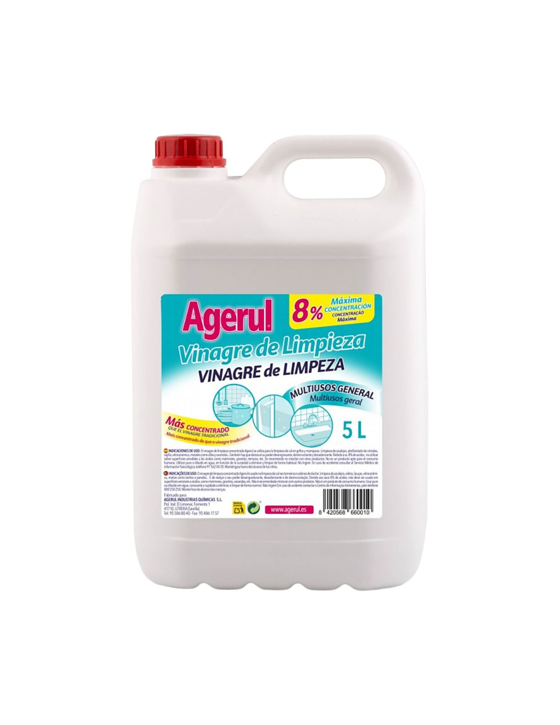 Vinagre de limpieza multiusos, garrafa de 5 l. producto natural con alto poder desinfectante y desodorizante. perfecto para eliminar grasa, cal y malos olores en cocinas, baños y suelos