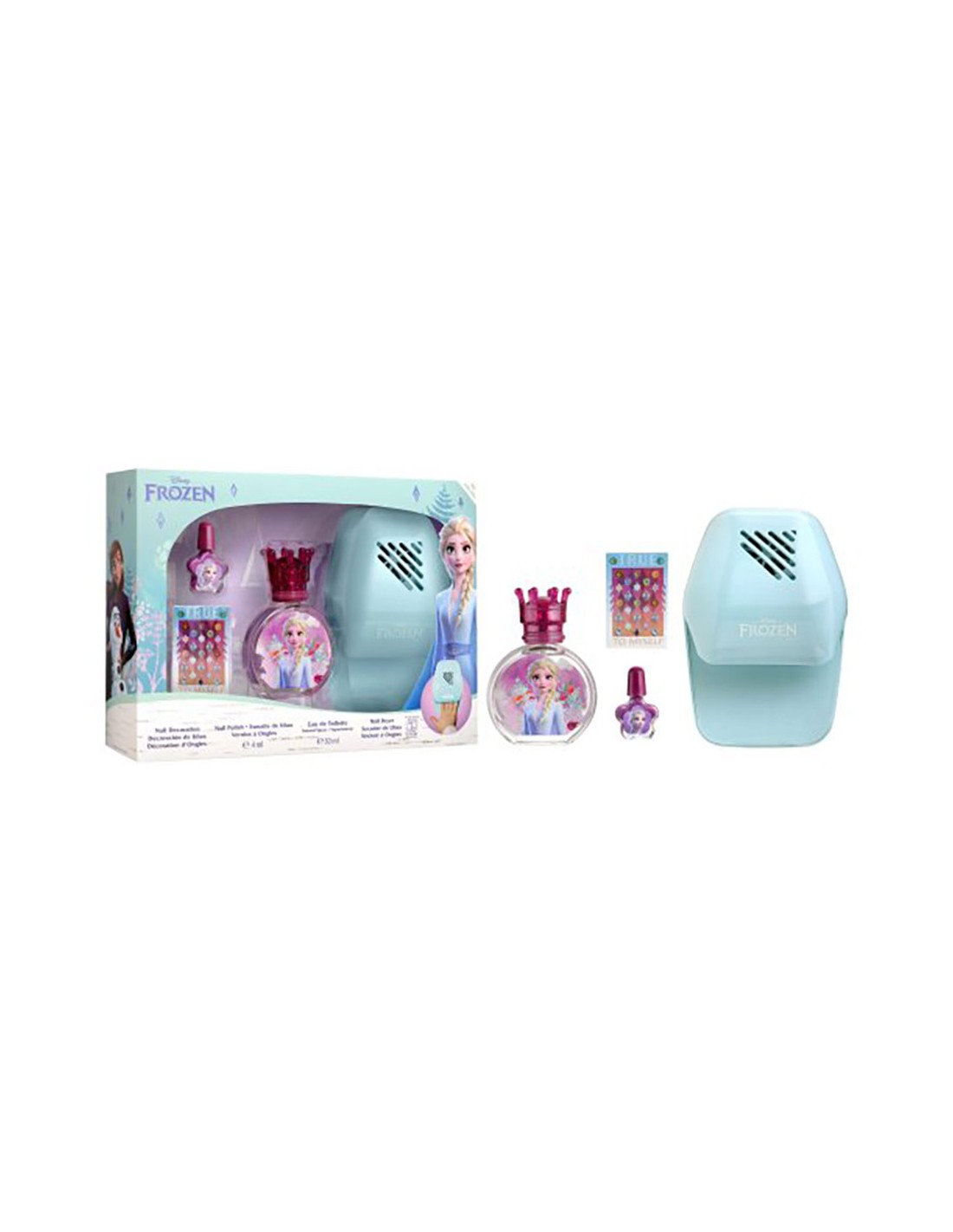 Set frozen que incluye colonia vaporizador de 50 ml, fragancia suave y fresca. incluye: esmalte 4 ml y decoración de uñas, secador de uñas infantil (funciona con pila 2 x aa no incluidas). presentación ideal como regalo