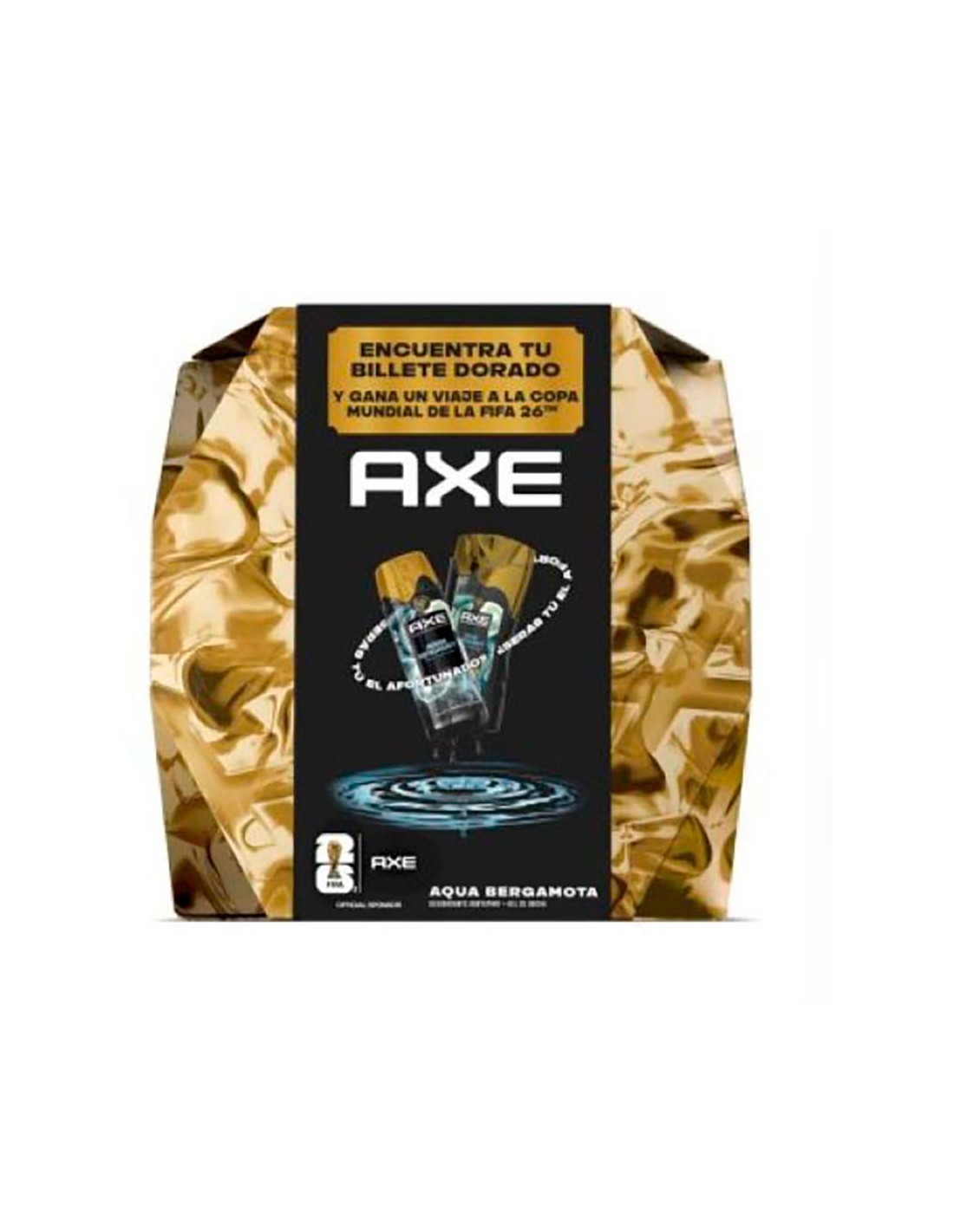 Estuche dorado aqua bergamota, patrocinador oficial de la fifa, encuentra tu billete dorado y gana un viaje a la copa mundial de la fifa 2026, desodorante spray 150 ml + gel de ducha 225 ml