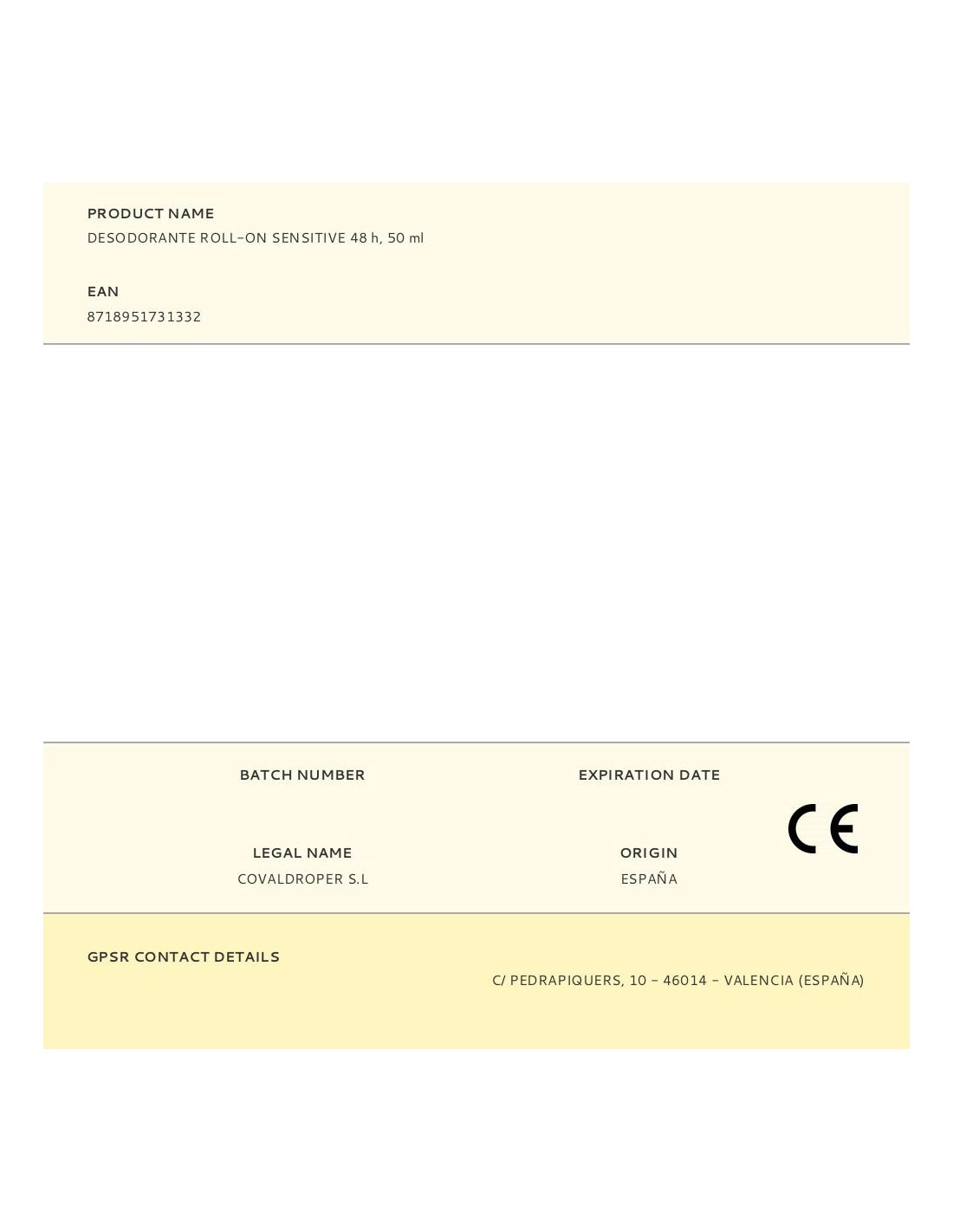 Desodorante roll-on dermo sensitive 48 h, antitranspirante, 50 ml