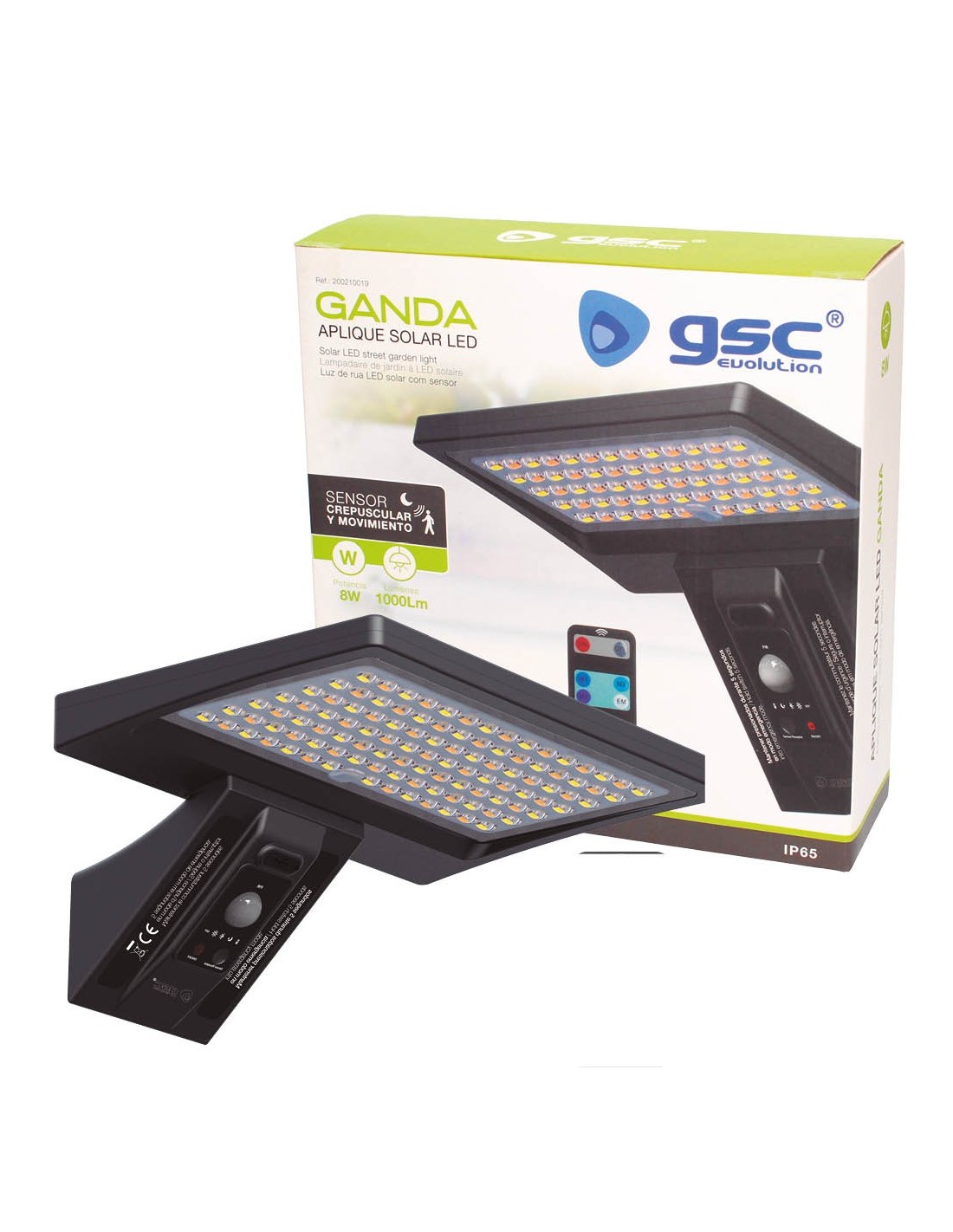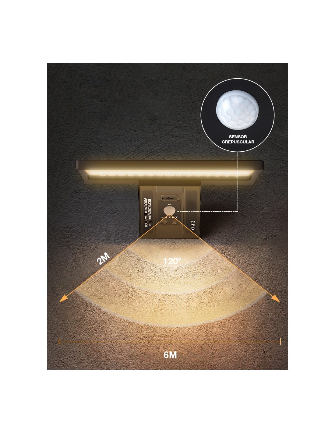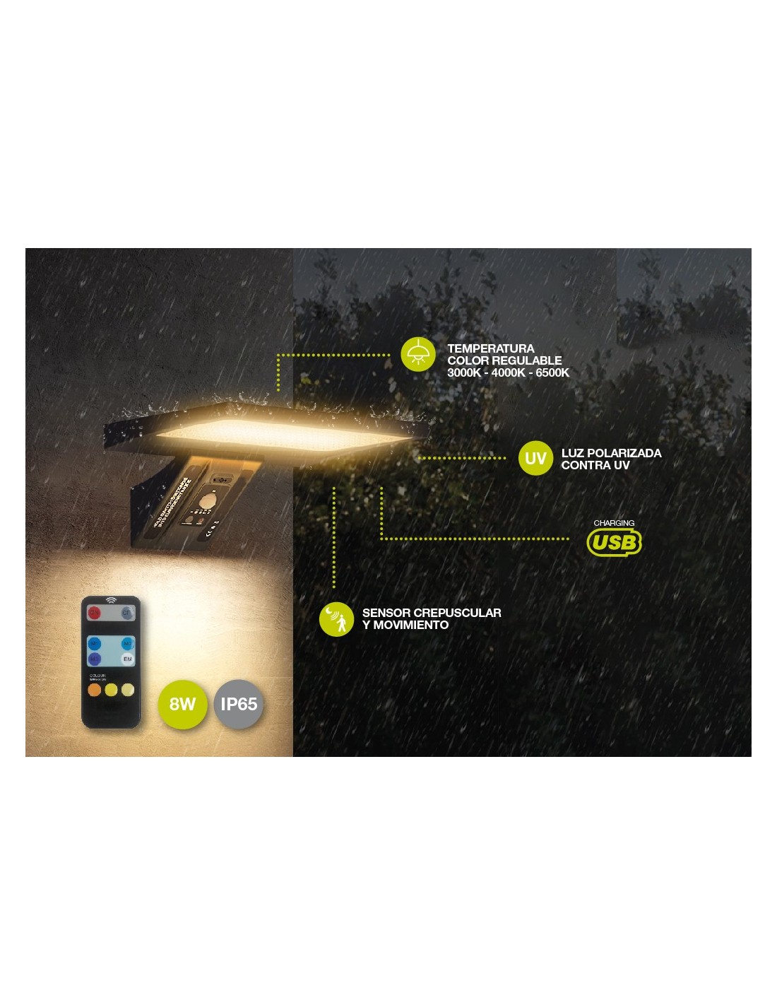Aplique solar 3,5w 430lm recargable sensor presencia (2-8m) color negro 10,5x13cm edm