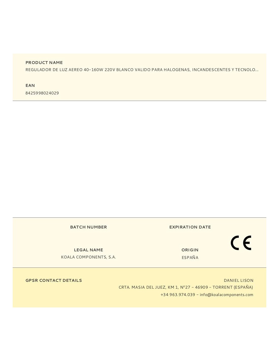 Regulador de luz aereo 40-160w 220v blanco valido para halogenas, incandescentes y tecnologia led