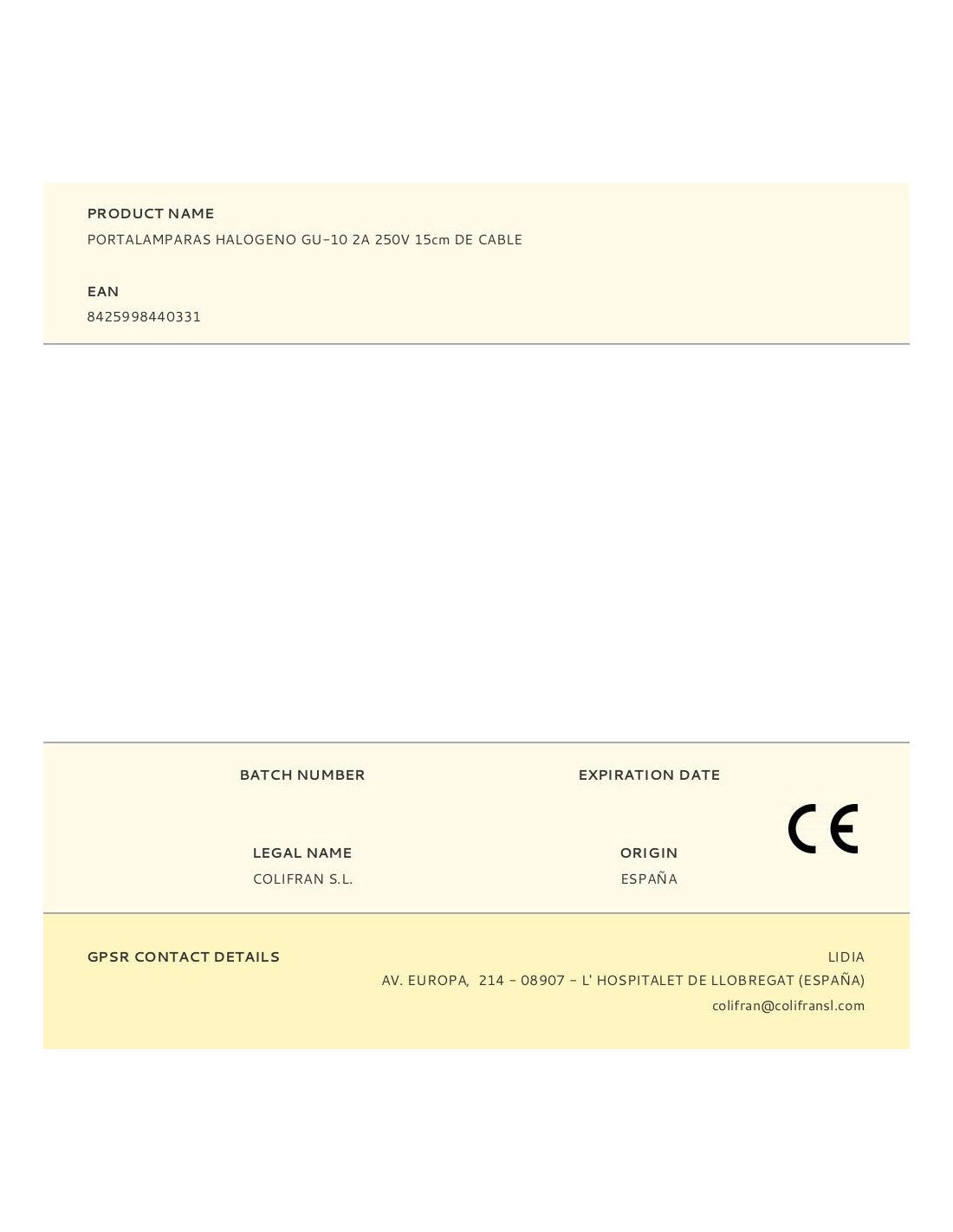 Portalamparas halogeno gu-10 2a 250v 15cm de cable
