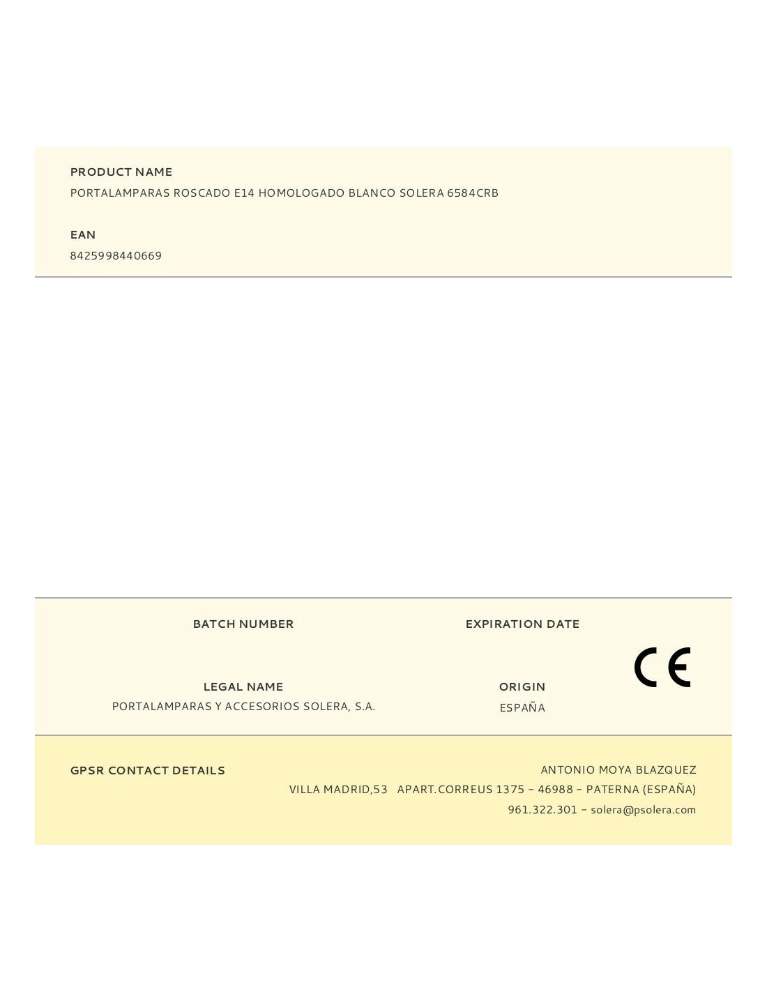Portalamparas roscado e14 homologado blanco solera 6584crb