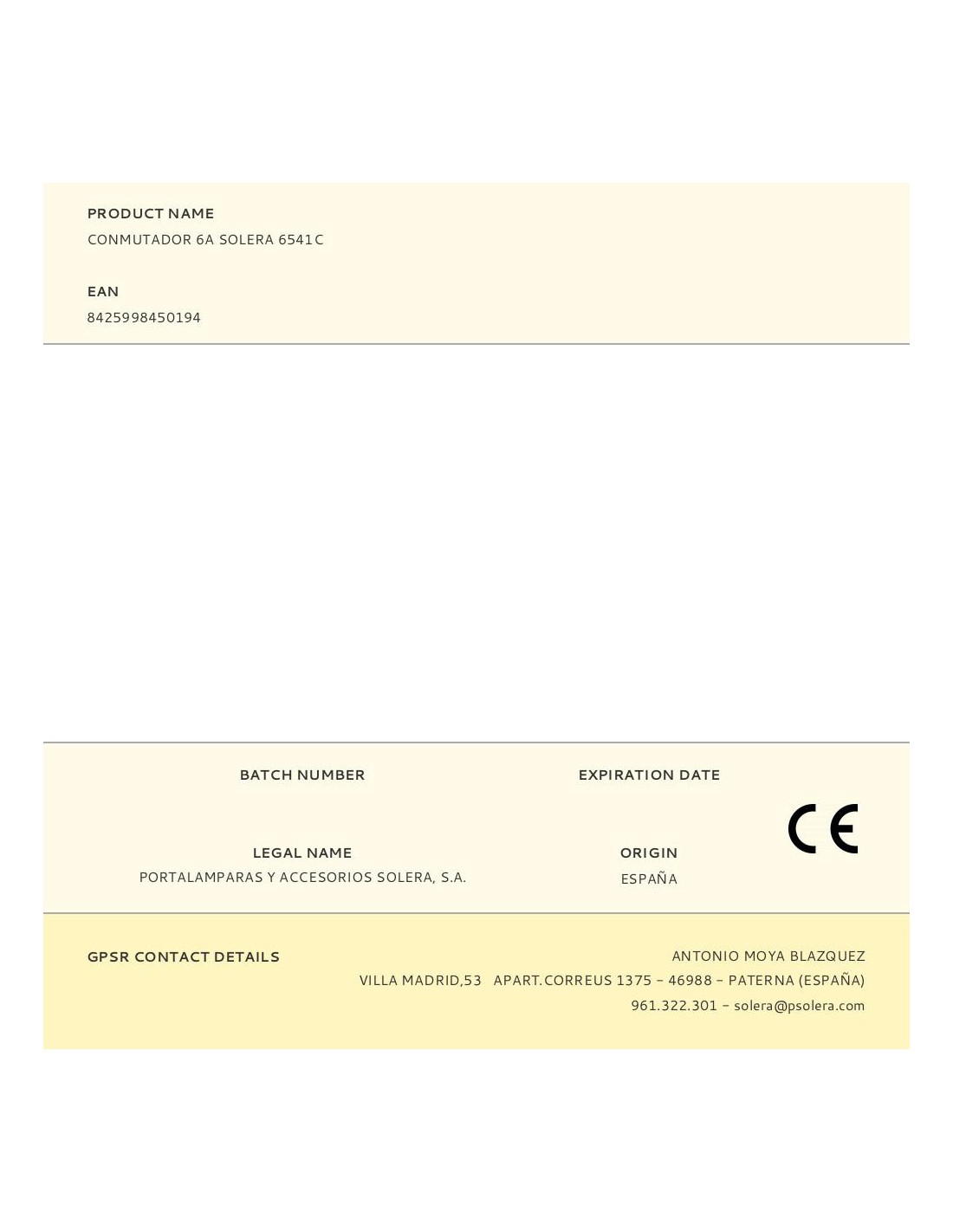 Conmutador 6a medidas 72x26,5x28mm solera 6541c