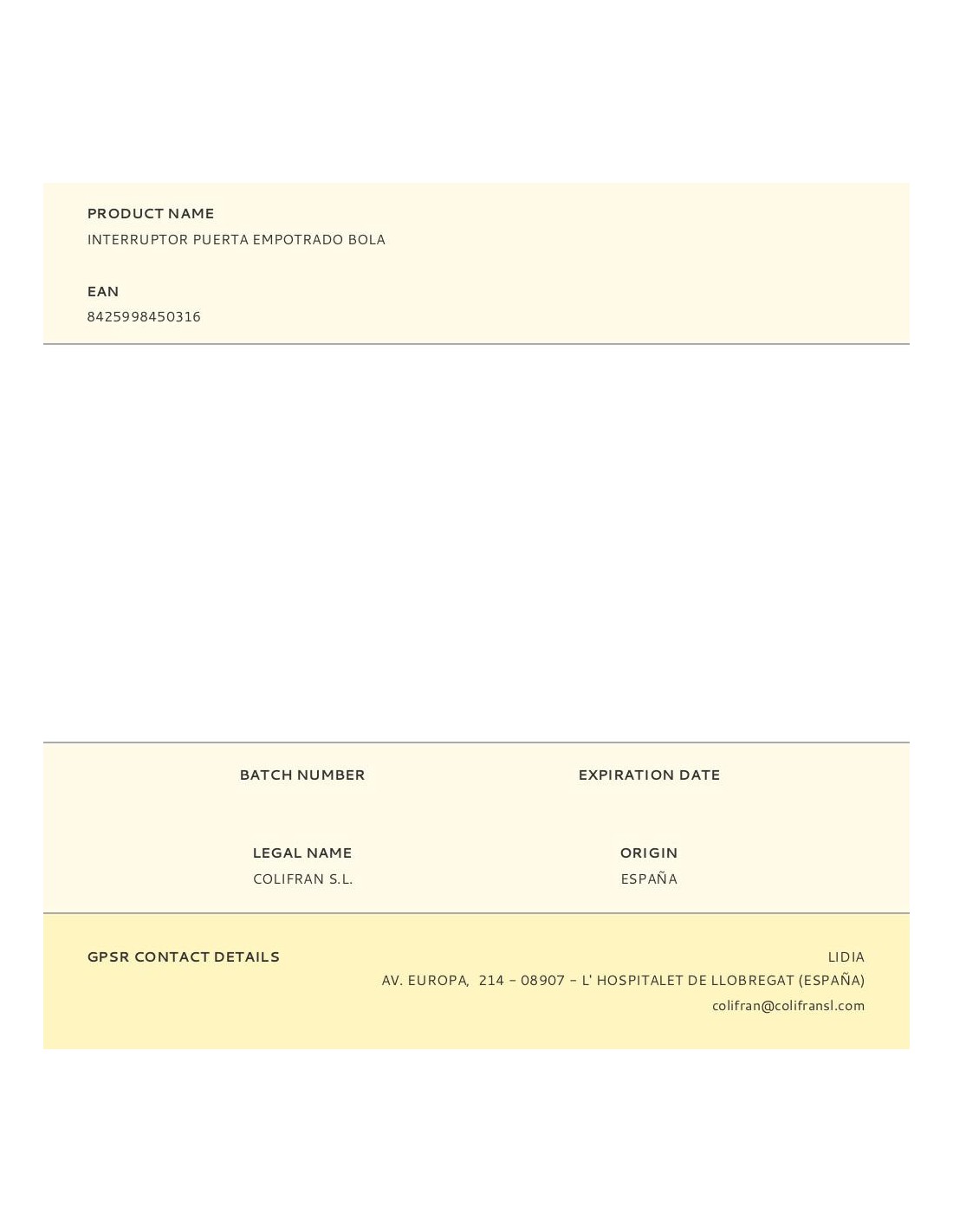 Interruptor puerta empotrado bola medidas exterior: 45,33x10,15mm empotrable: 31,86x9,9mm