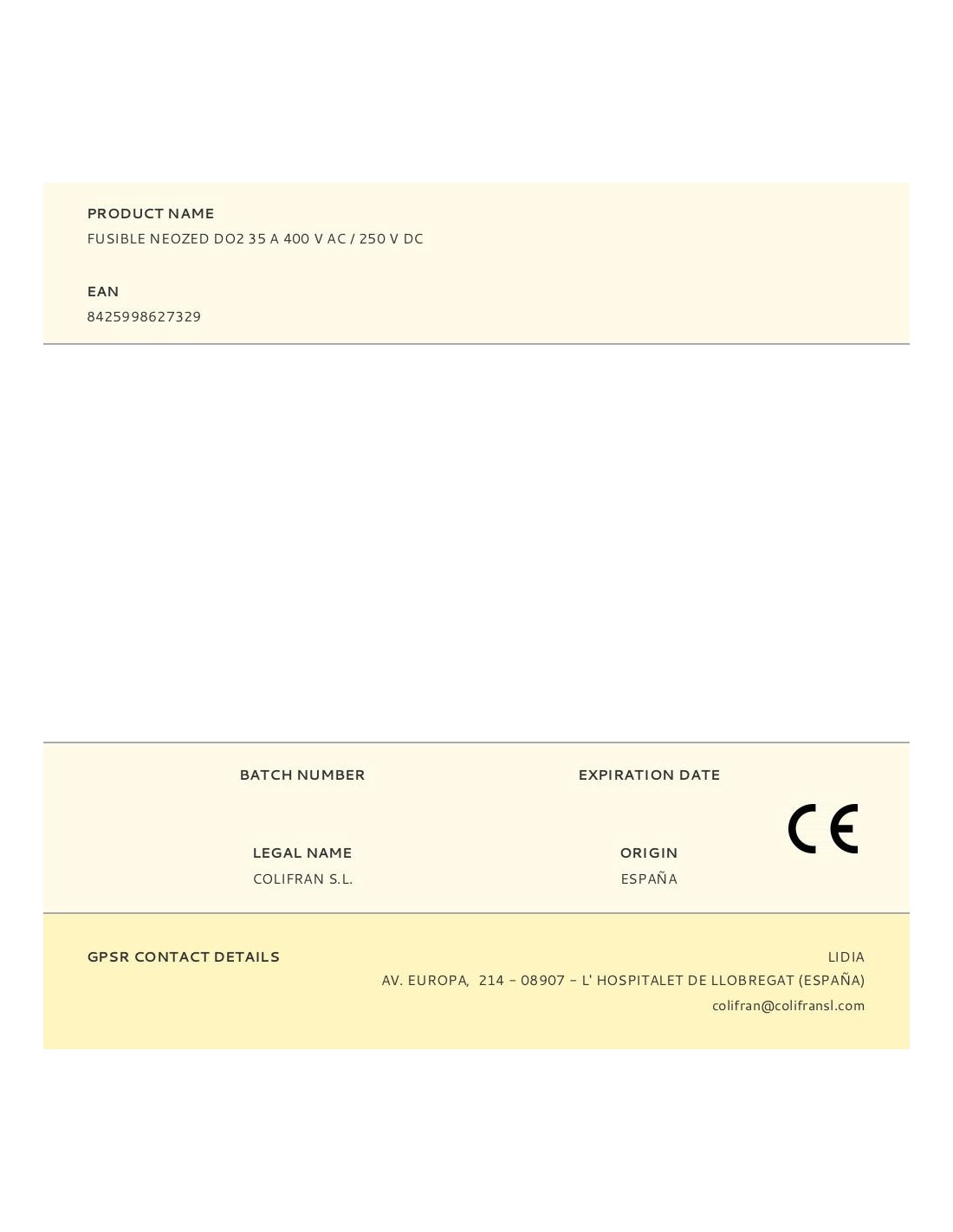 Fusible neozed do2 35a 400v ac/250v dc