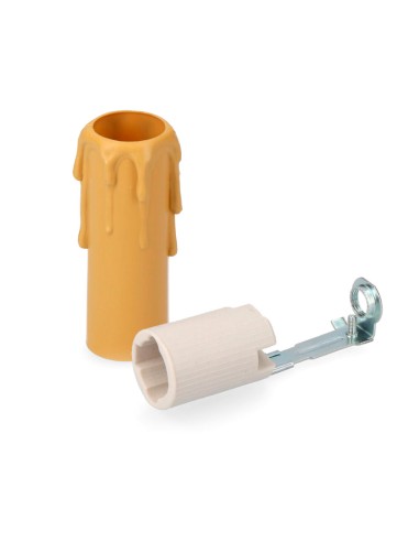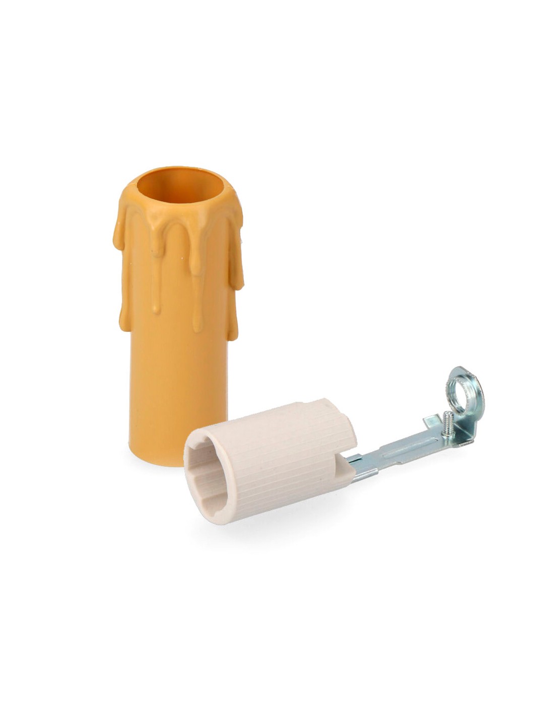 Portalámparas e-14 porcelana 4a 250v con vela mediana crema uso interior y salida de cable frontal 44145+44126 (envasado)