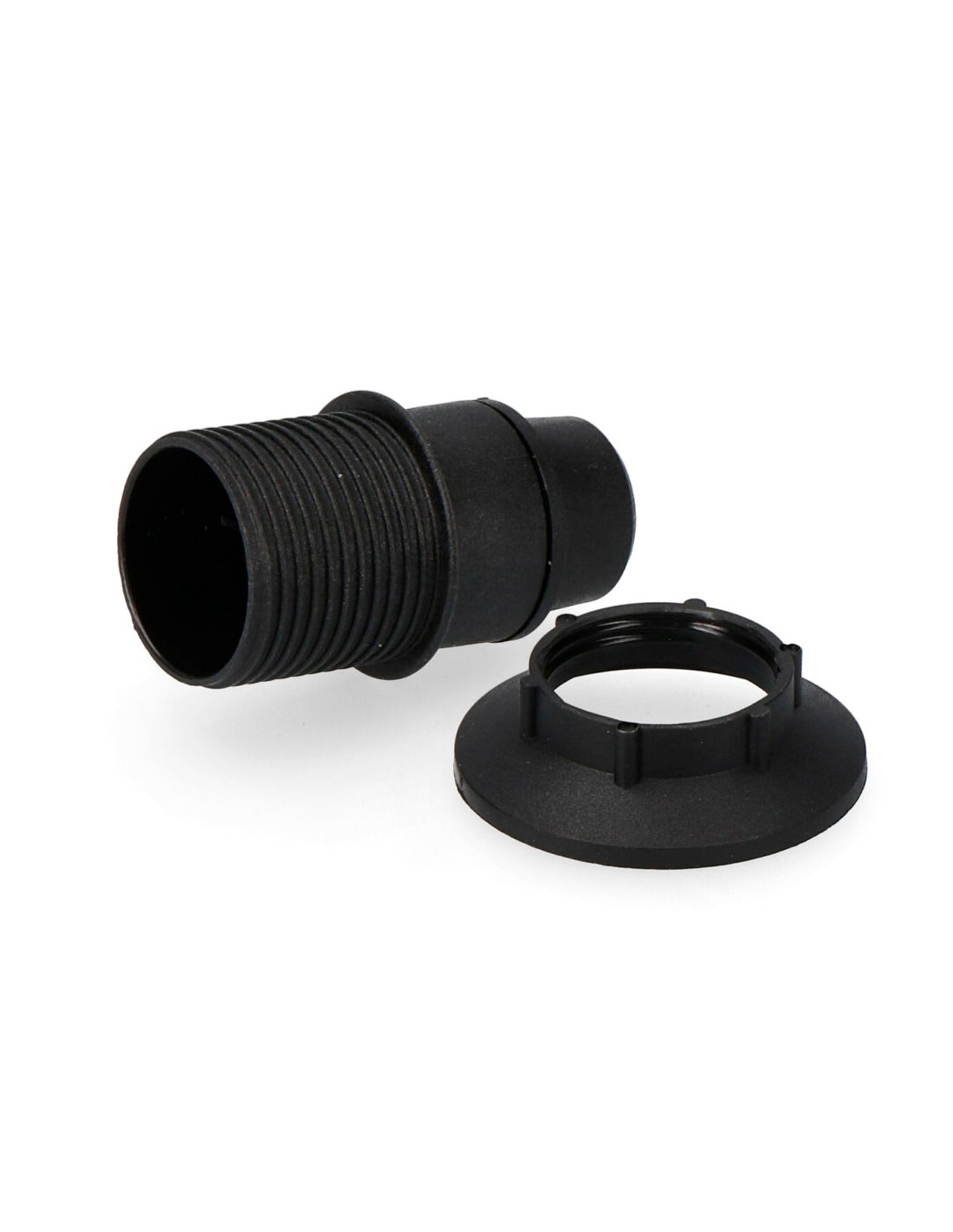 Portalamparas e14 semi-roscado + arandela (retractilado) negro solera