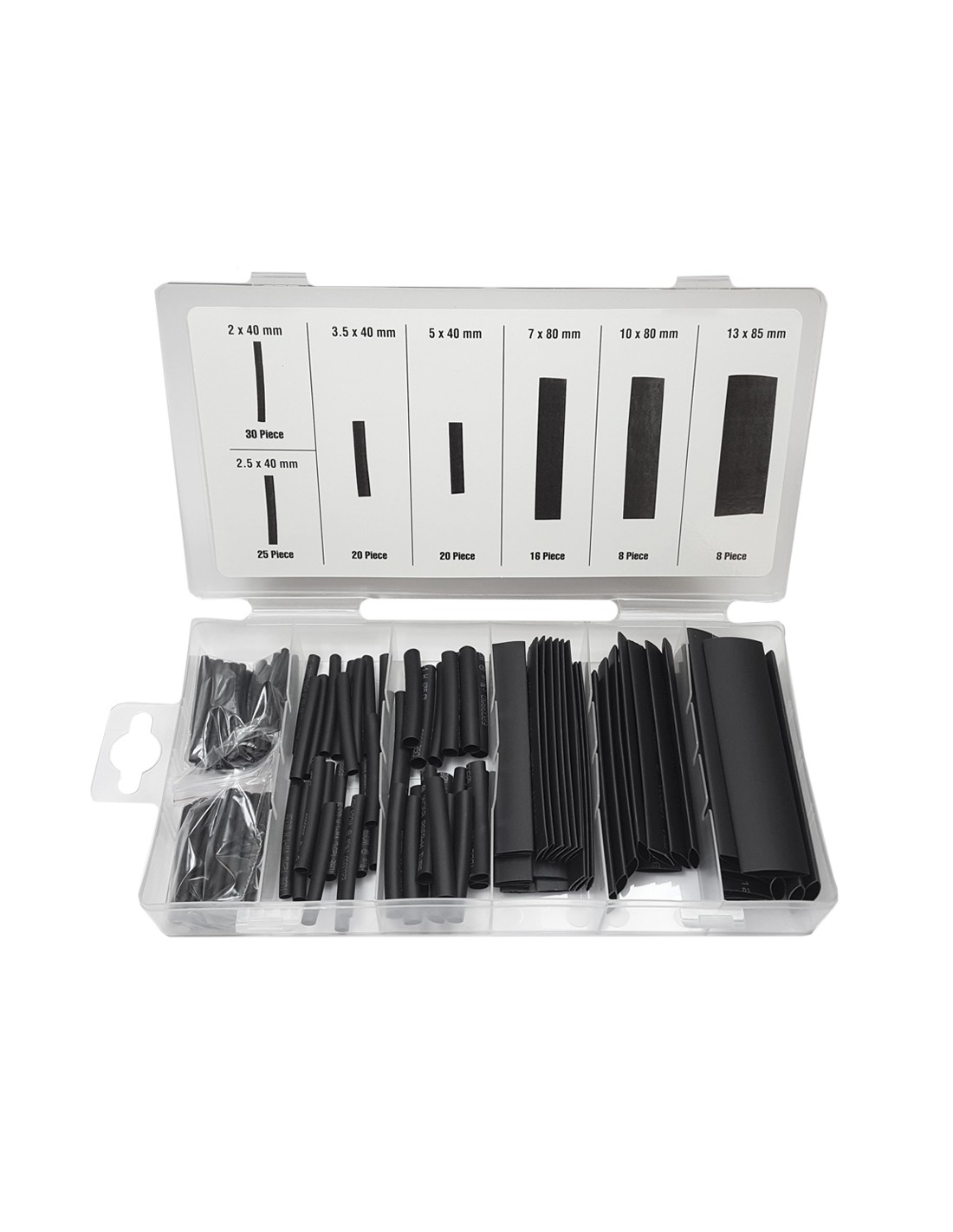 Set de 120 fundas termoretractil negras varios tamaños - 2x40mm, 2'5x40mm, 3'5x40mm, 5x40mm, 7x80mm, 10x80mm, 13x85mm