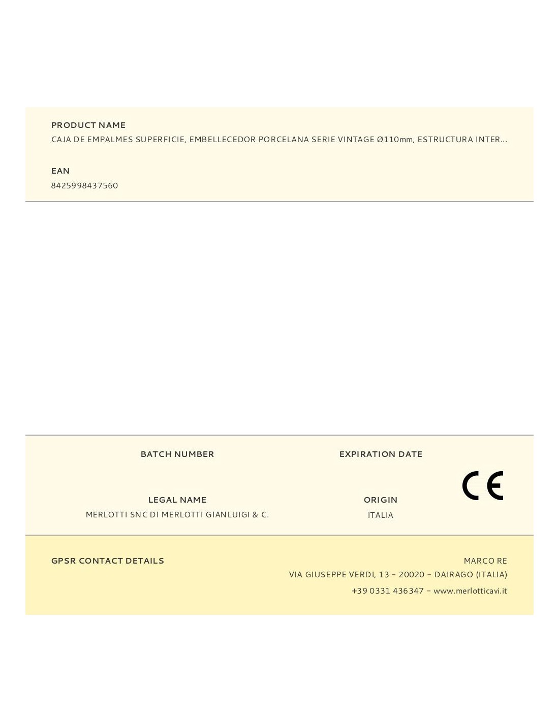 Caja de empalmes superficie, embellecedor porcelana serie vintage ø110mm, estructura interior ø80x40mm blanca
