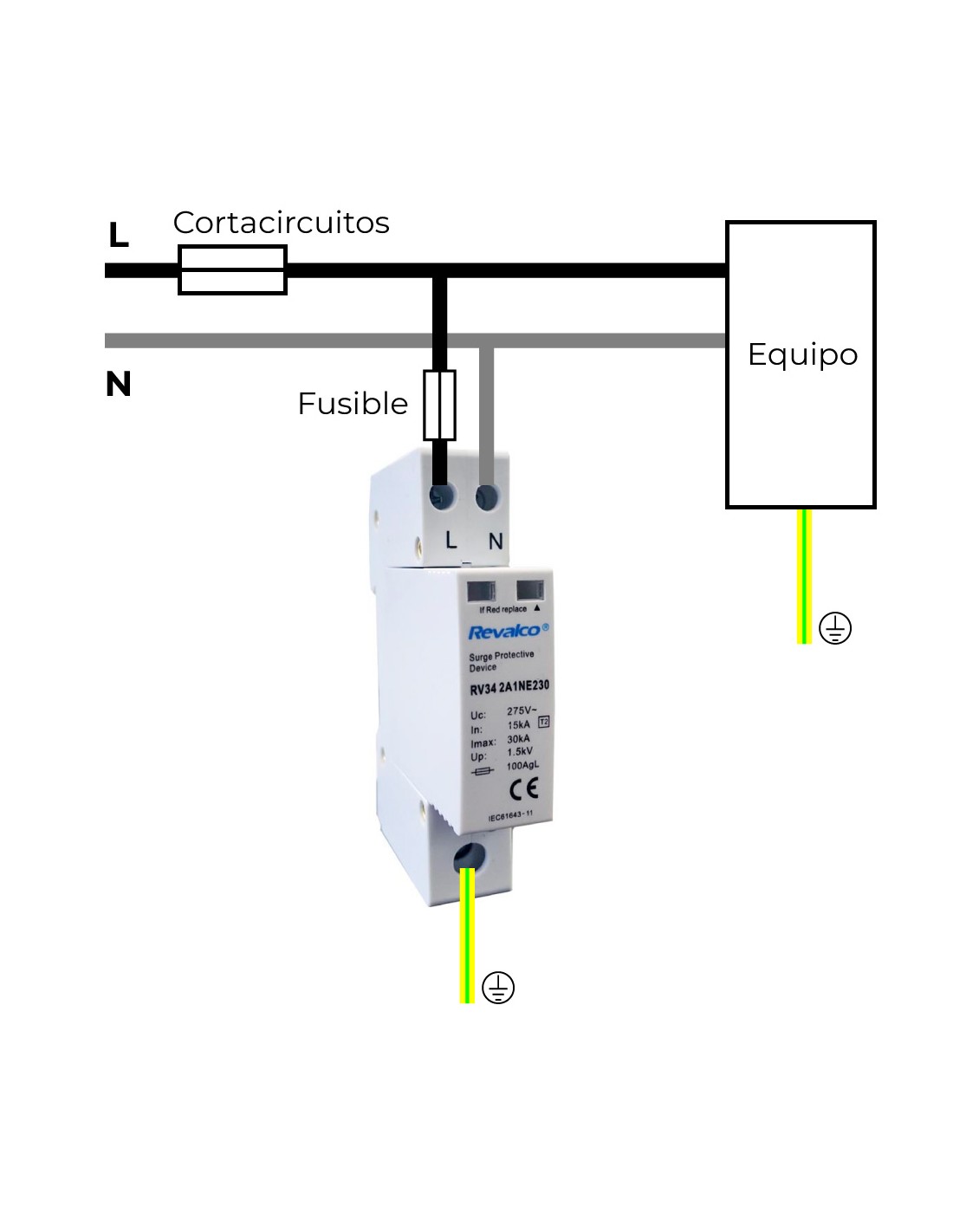 Protector sobretension transitorio 1p+n 30ka c 230vac 1 modulo para rail din 35 mm une-en 61643-11:2013 (retractilado)