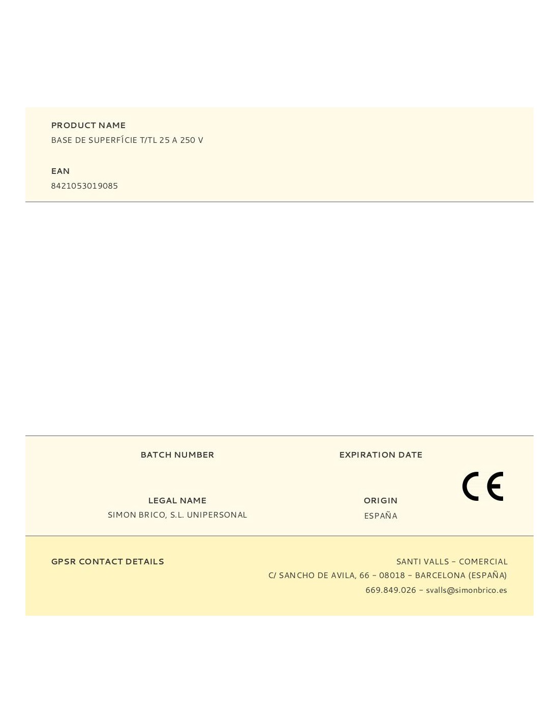 Base schuko de superfície t/tl 25a 250v especial hornos