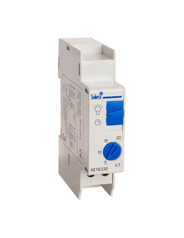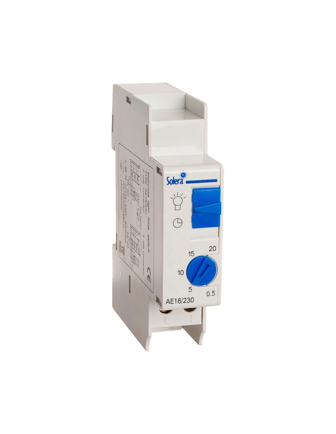 Minutero escalera automatico - 1 modulo din. tiemporizacion: 30seg-20min. contacto: 1no (16a) tension: 230v ac (retractilado) solera ae16/230