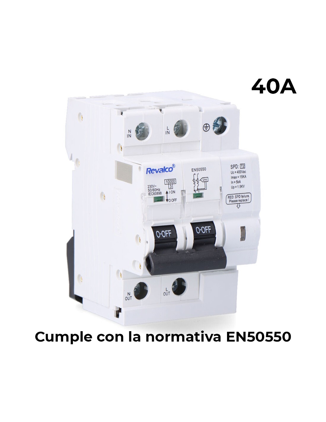 Iga 2p 40a c 10ka protector de sobretension permanente segun normativa en-50550 y transitorio 5-15ka 275v
