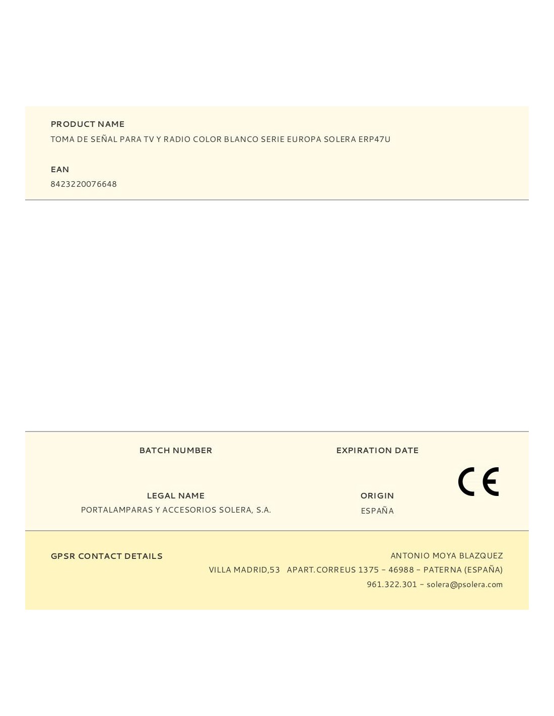 Toma de señal para tv y radio color blanco mecanismo completo, embornamiento por tornillo, de empotrar 83x81x10mm serie europa solera erp47u