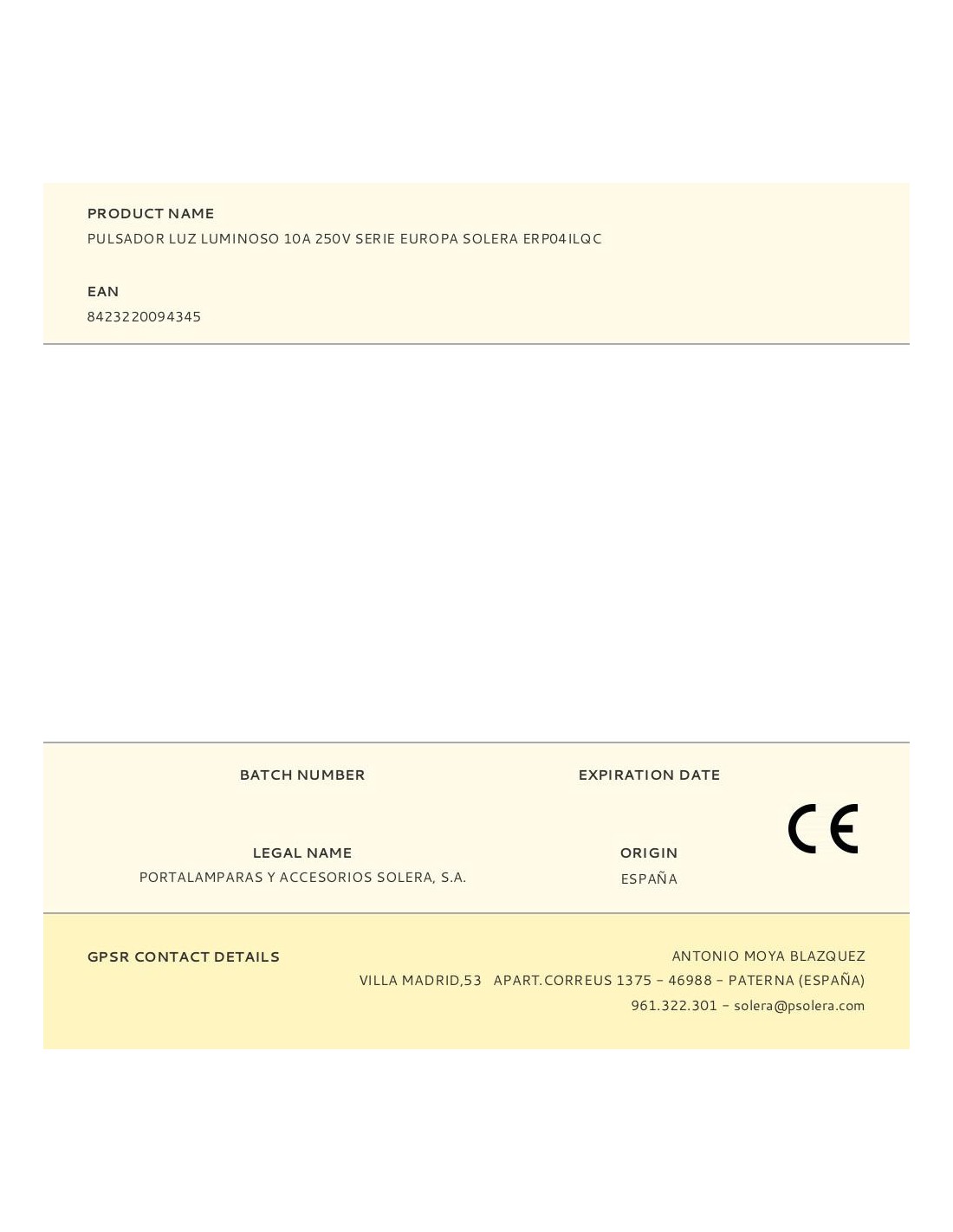 Pulsador luz luminoso 10a 250v contactos de plata de alto poder de ruptura. embornamiento rapido. 83x81mm. serie europa solera erp04ilqc