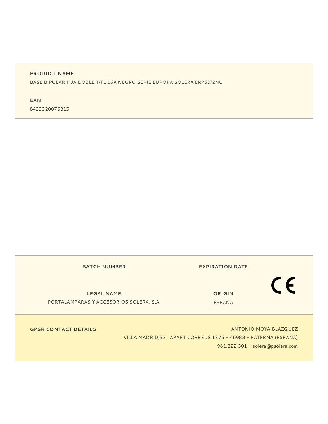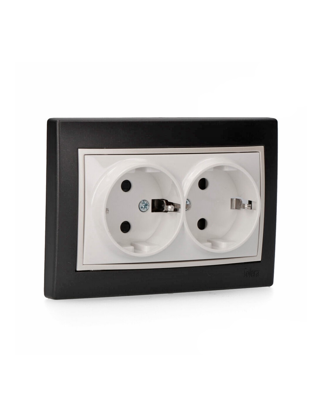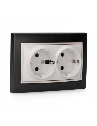 Base bipolar fija doble t/tl 16a negro mecanismo completo, 154x81x10mm embornamiento por tornillo, de empotrar, marco color negro y tapa color blanco. con obturador, o serie europa solera erp60/2nu