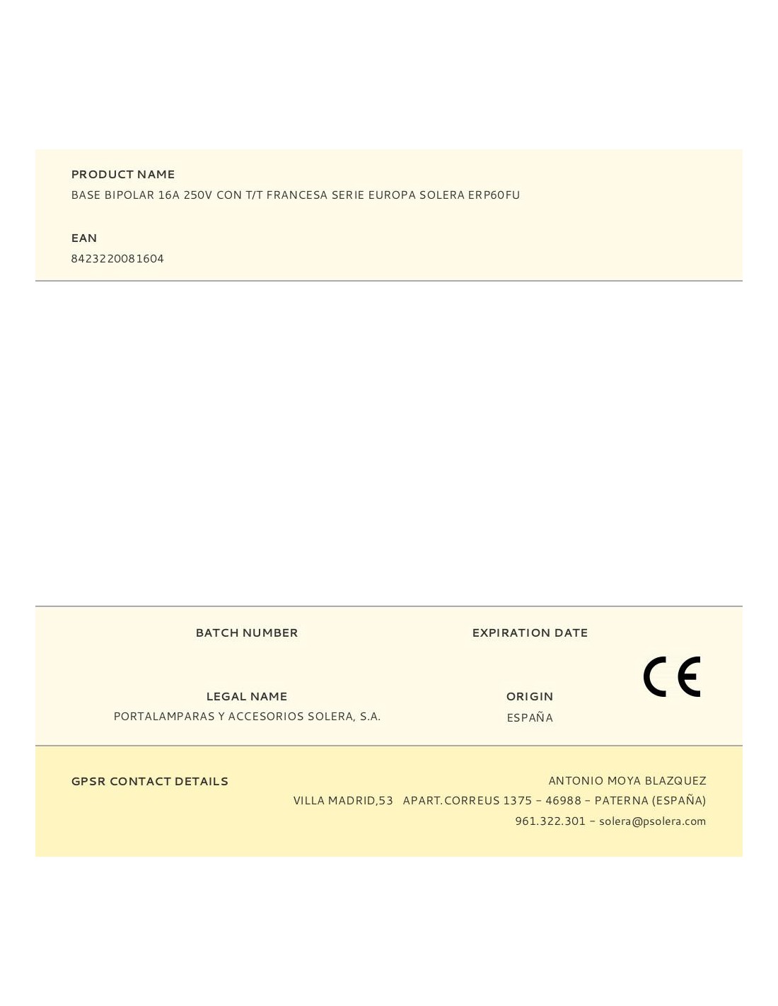 Base tipo f 4,8 mm 16 a 250 v t/tl con anilla para fácil extracción, blanca