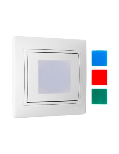 Piloto de escalera 10a 250v 83x81mm color blanco. contactos de plata de alto poder de ruptura. embornamiento por tornillo. mecanismo completo serie europa solera erp90u