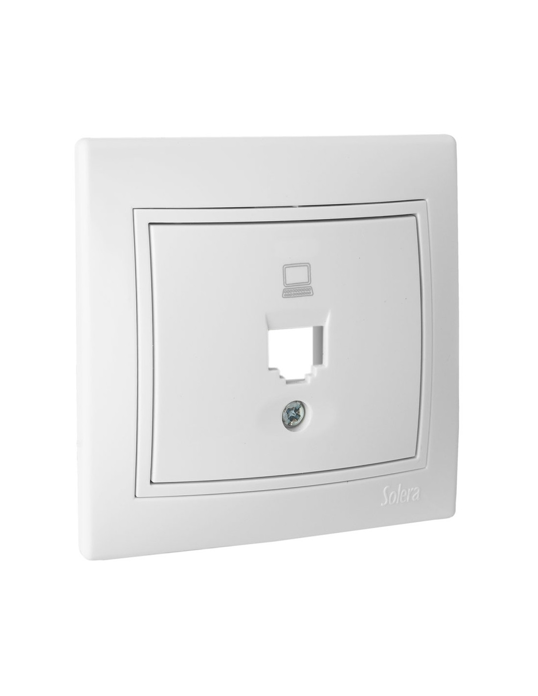 Tapa + chasis para toma de datos rj45. sin conector. de empotrar. color blanco, con marco 83x81x10mm serie europa solera erp88/1u