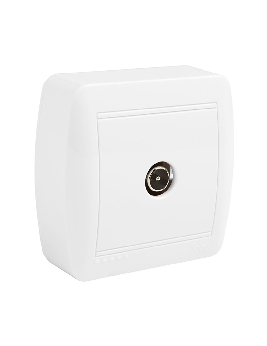 Toma de señal unica para tv 74x72x28mm (ancho/fondo/alto). entradas para canales de 10x12mm, 10x16mm y 10x22mm, bornes de agujero. superficie mural solera mur94u